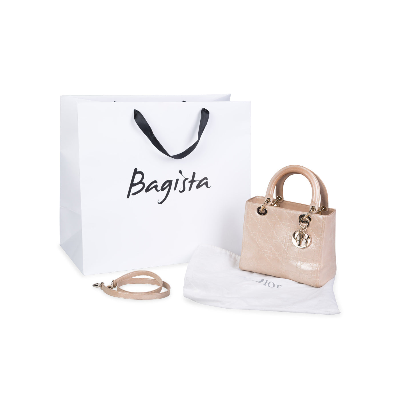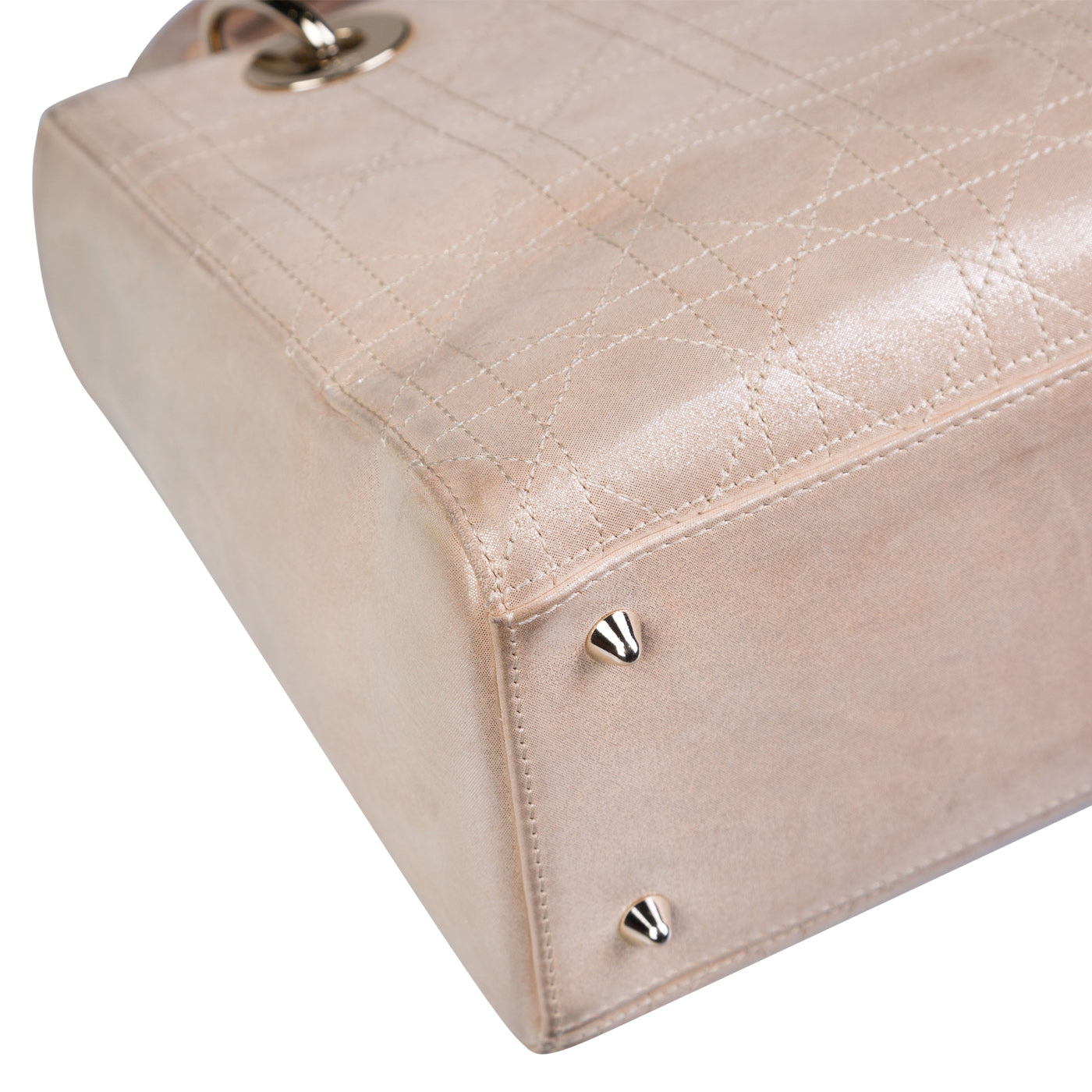 A timeless work of art, the "Lady Dior" bag has become the icon 'it-bag' within the entire Dior collection. Meticulously crafted by hand, this Medium-sized gold shimmer fabric bag is enhanced by signature Dior "Cannage" stitching. The Lady Dior bag, also known as the Princess bag, is undoubtedly Dior’s most iconic bag. The bag is named after Princess Diana, who skyrocketed its popularity ever since she was first gifted the bag in the Mid-90's.