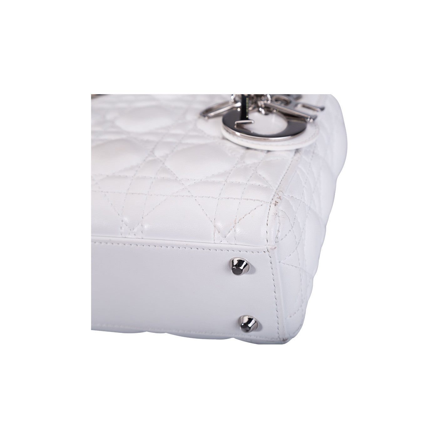 A timeless work of art, the "Lady Dior" bag has become the icon 'it-bag' within the entire Dior collection. Meticulously crafted by hand, this micro white leather bag is enhanced by signature Dior "Cannage" stitching. The Lady Dior bag, also known as the Princess bag, is undoubtedly Dior’s most iconic bag. The bag is named after Princess Diana, who skyrocketed its popularity ever since she was first gifted the bag in the Mid-90's. This micro version is the perfectly compact bag to carry day or night for instant chic.