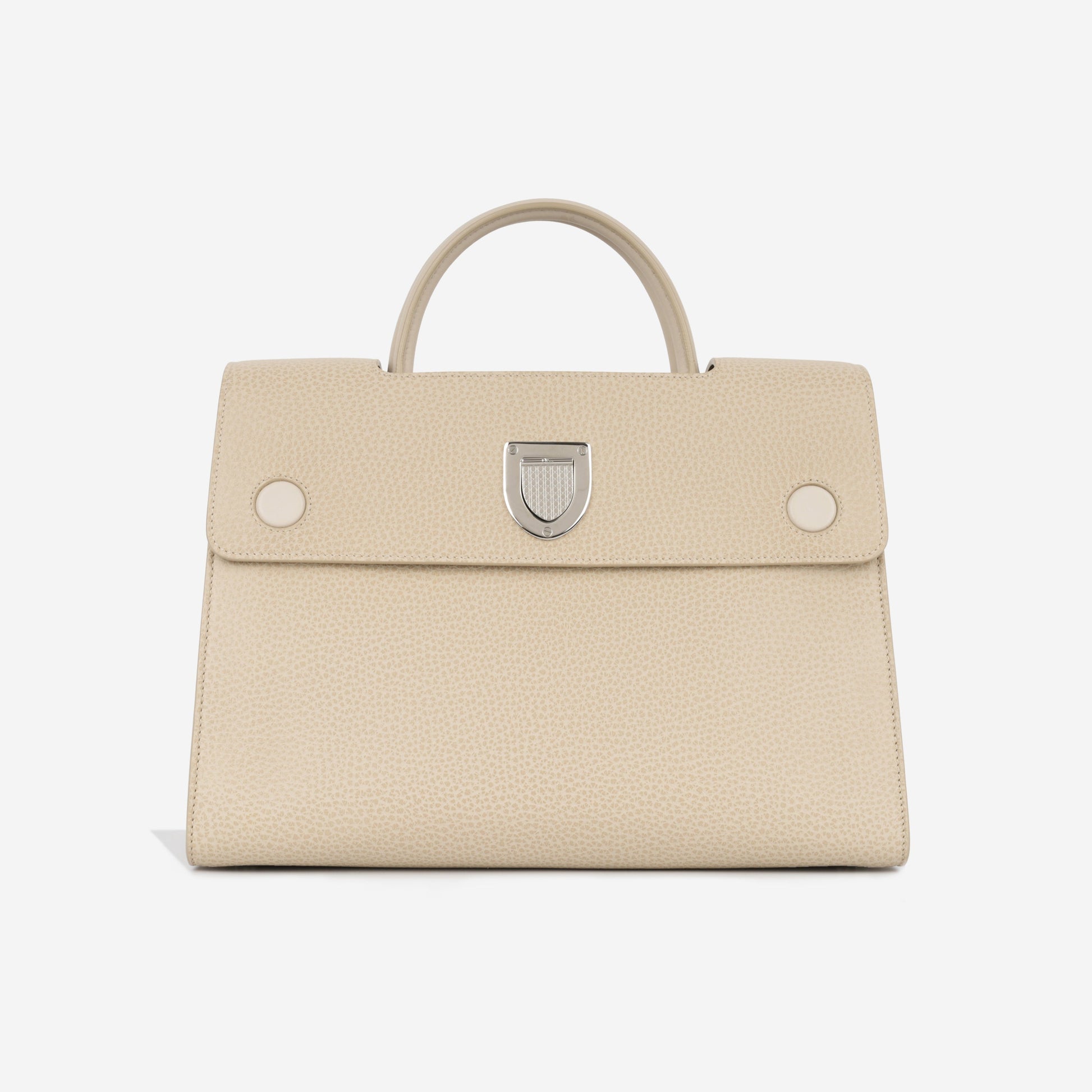 Dior presents this stunning piece from their Diorever line. Carefully crafted in light beige Taurillon leather with silver-tone hardware , this bag is the ultimate dream for any woman with a love for luxury. Dress it up with a cocktail dress and a pair of heels, or down with a white blouse and cropped trousers for a more casual look. Fit all your every day essentials inside the spacious compartment, while remaining effortlessly sleek, stylish and sophisticated. The Diorever is well-worthy of any luxury handbag collection, it's a classic piece that will remain in your wardrobe forever.