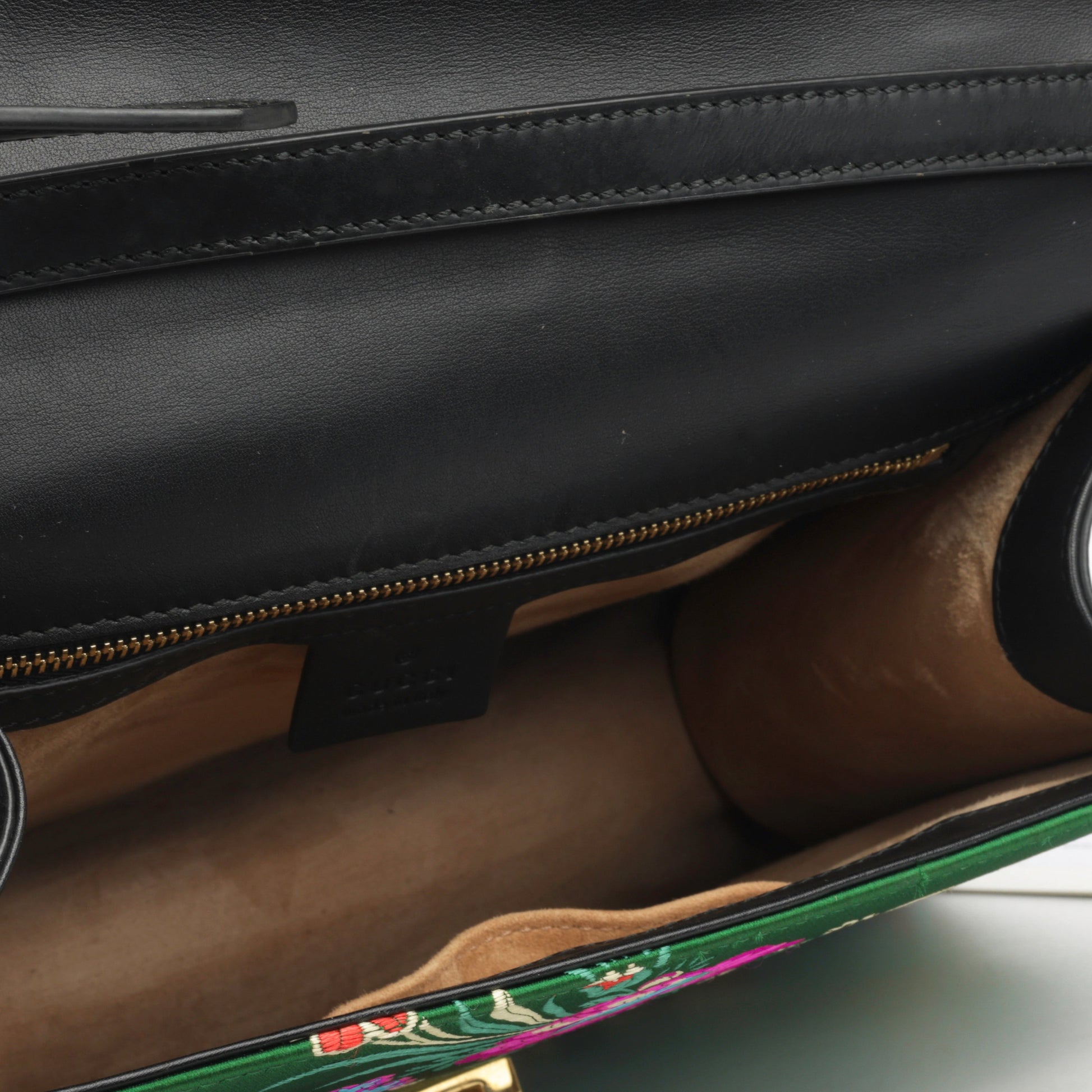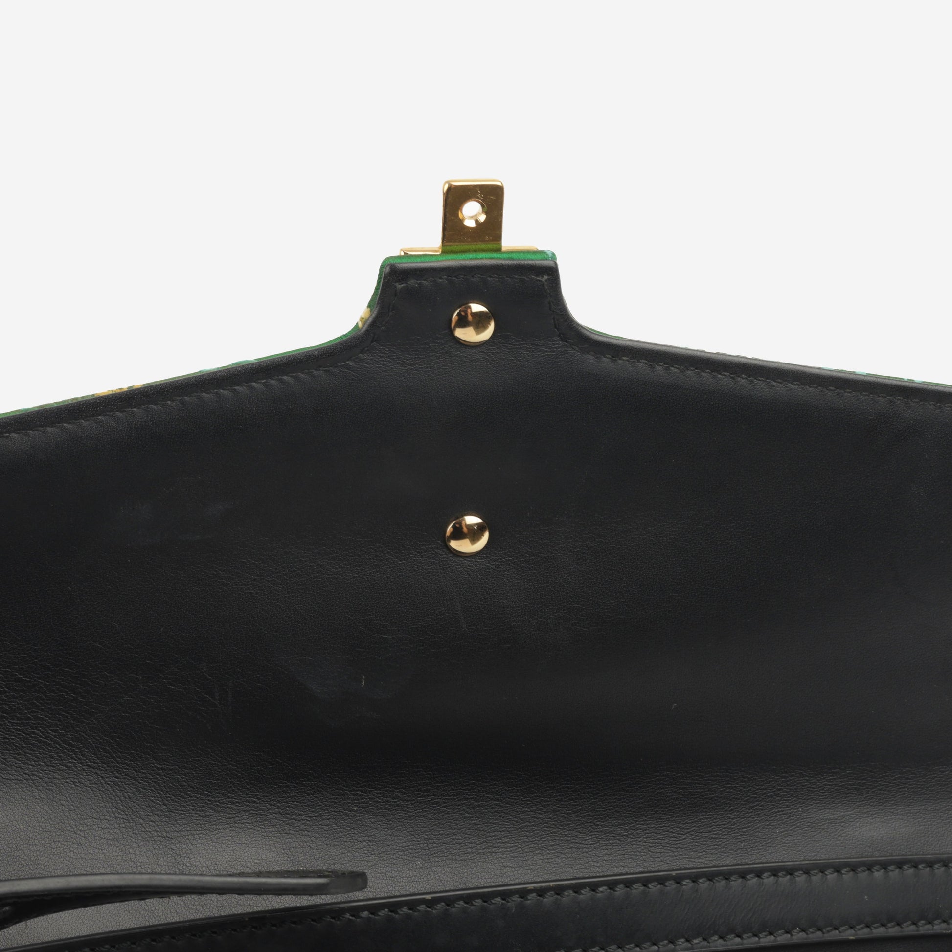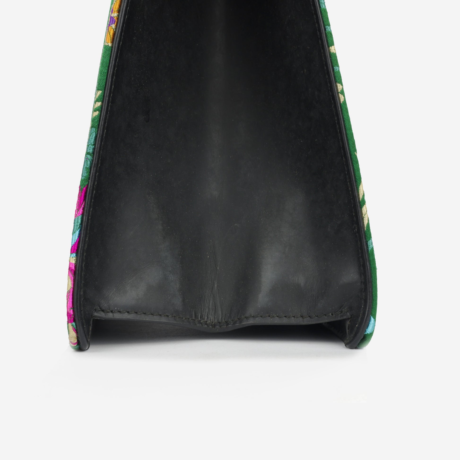 With a gold buckle chain prominently depicted on the front flap, the Sylvie is luxurious, glamorous and the perfect compliment to anything you may have in your wardrobe. Crafted from satin green with floral pattern adorned with gold-tone hardware, which create a unique piece to your wardrobe.�