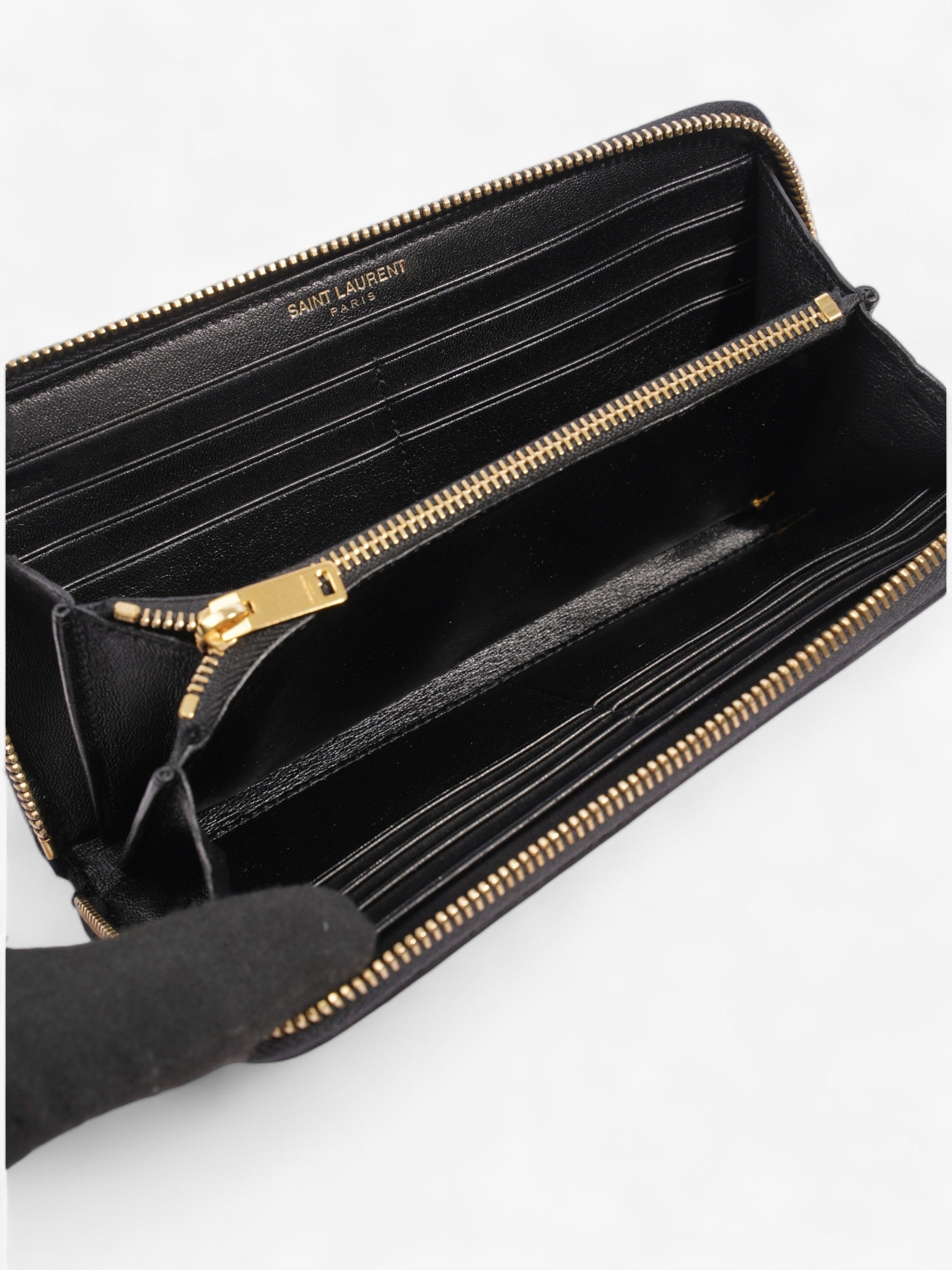 Saint Laurent Leather Zip Round Wallet Black / Pink Leather