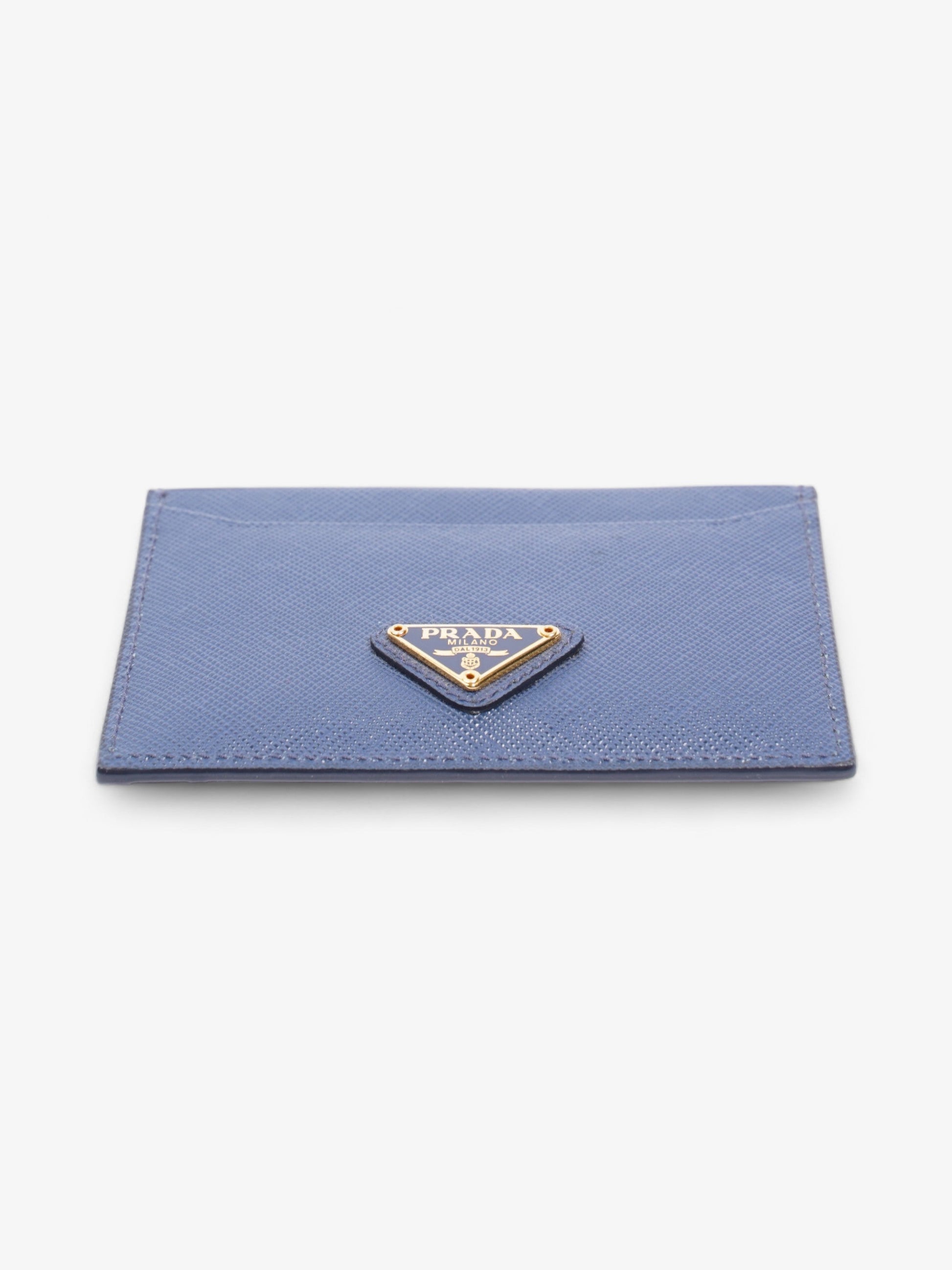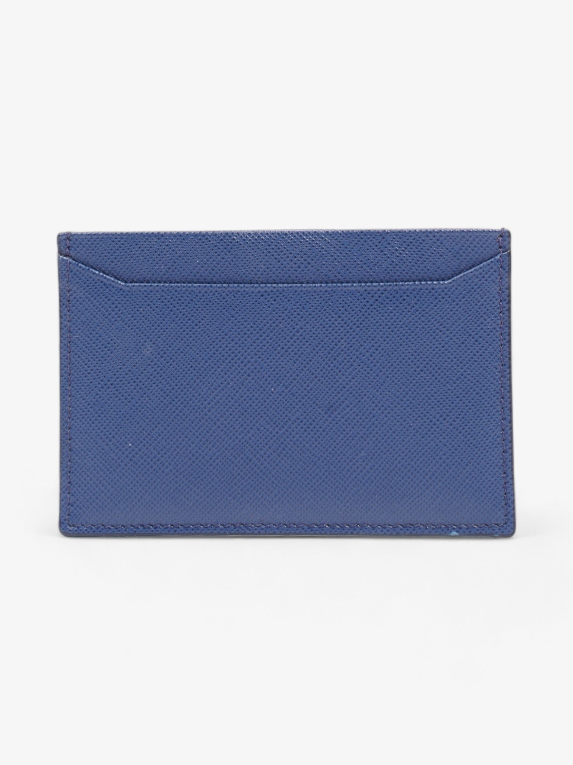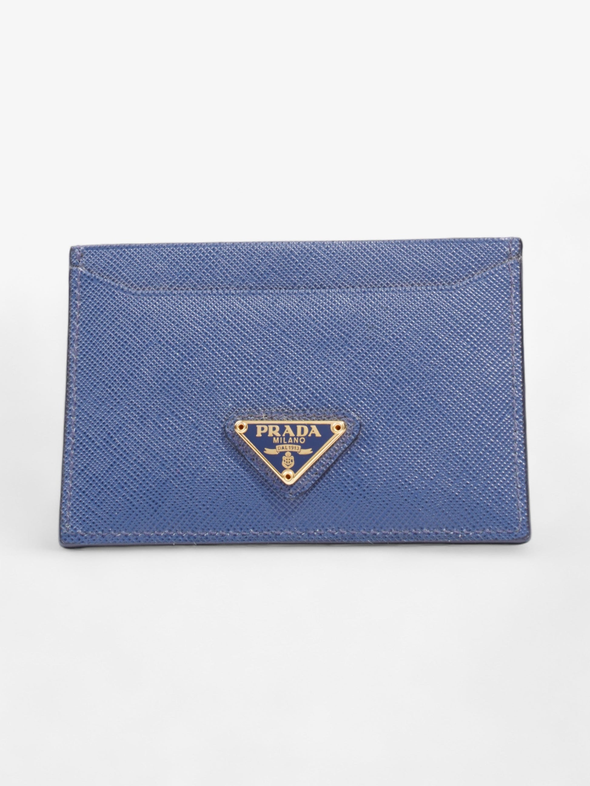 Prada Logo Card Case Wallet Navy Saffiano Leather