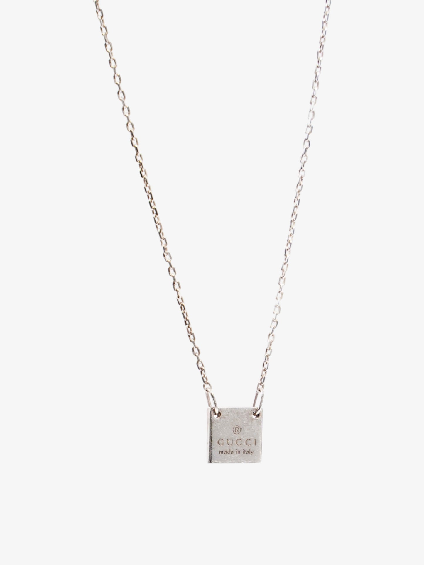 Gucci Logo Plate Necklace Silver Silver Sterling