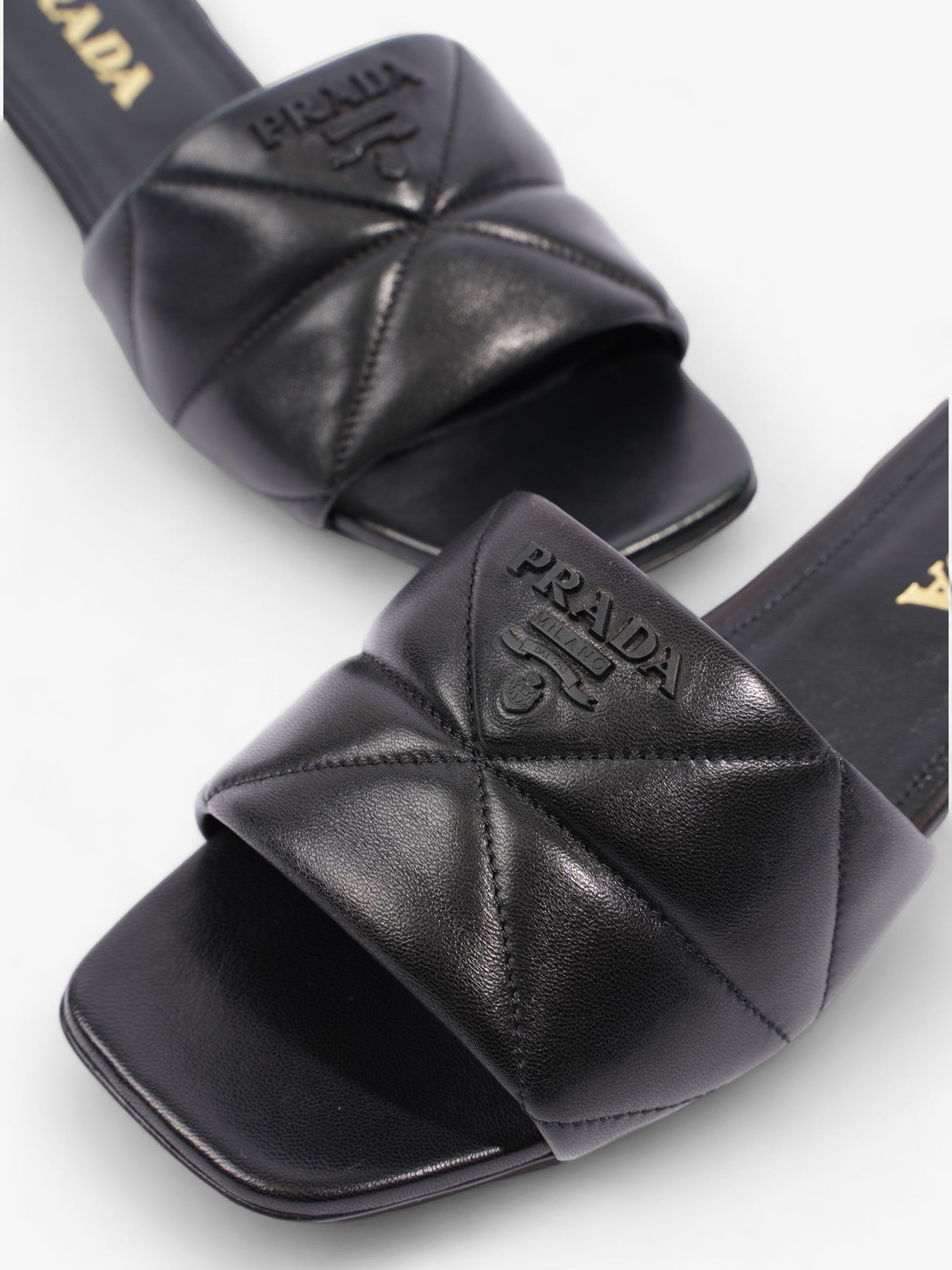 Prada Logo Sandali Quilted Black Nappa Leather EU 38 UK 5