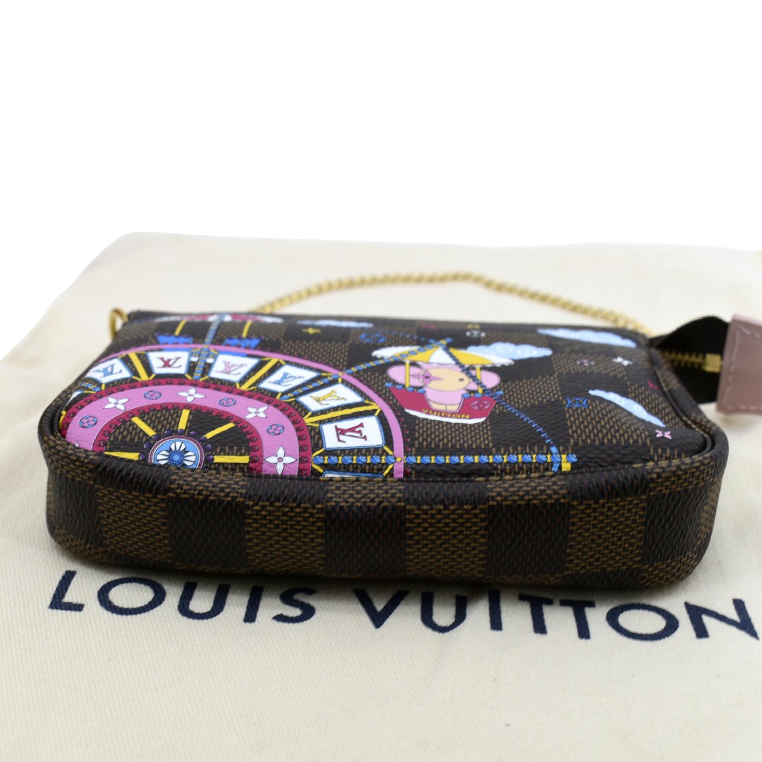 LOUIS VUITTON Christmas Animation Pochette Damier Ebene Accessoires Pouch Rose Ballerine