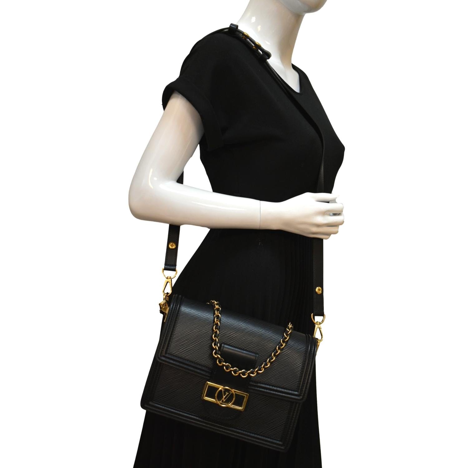 LOUIS VUITTON Dauphine MM Epi Leather Shoulder Bag Black