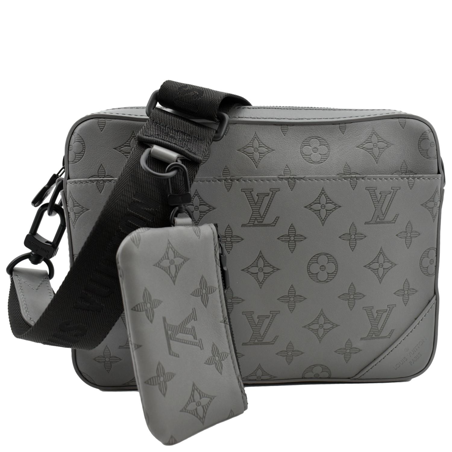 LOUIS VUITTON Duo Messenger Monogram Shadow Leather Shoulder Bag Grey