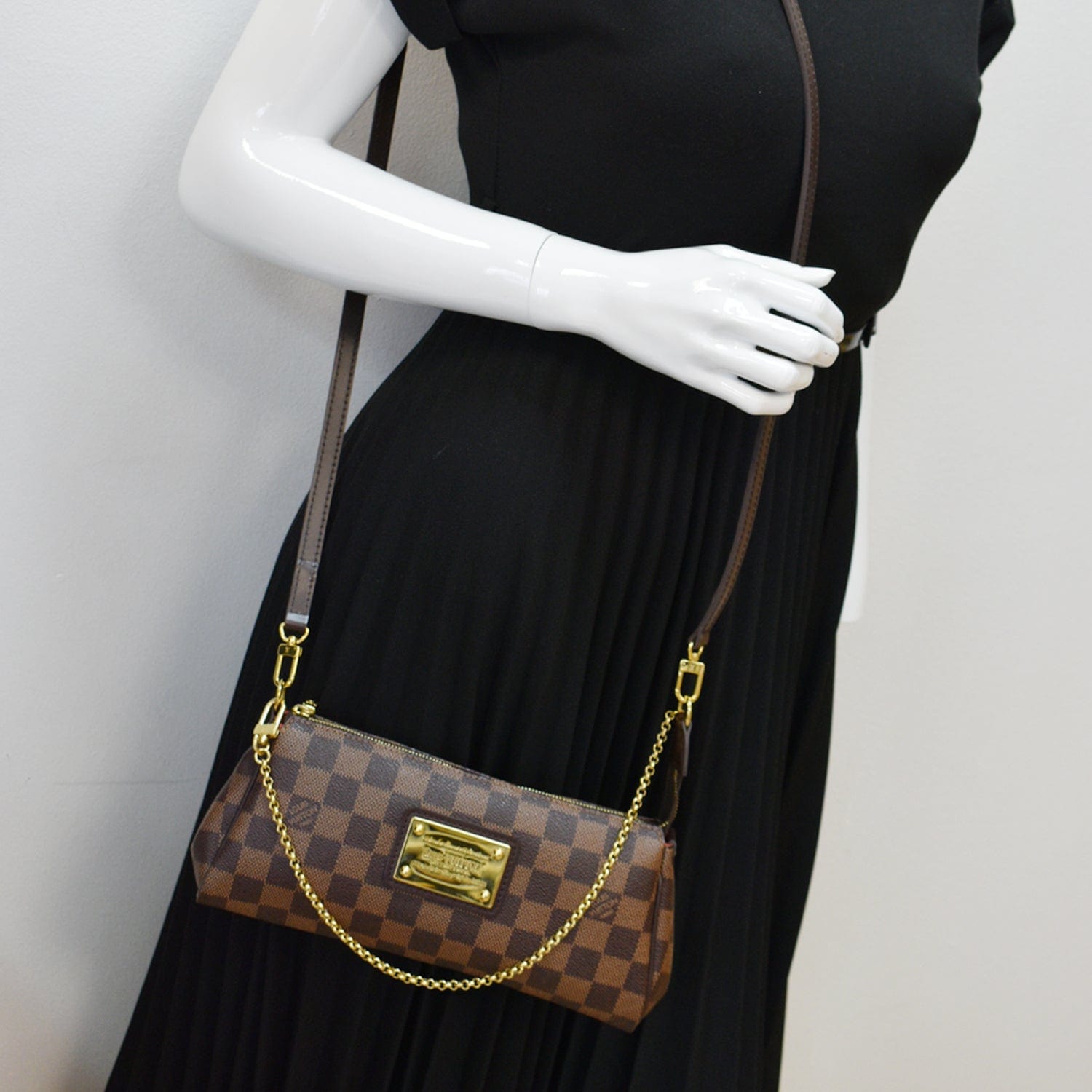 LOUIS VUITTON Eva Pochette Damier Ebene Clutch Crossbody Bag Brown