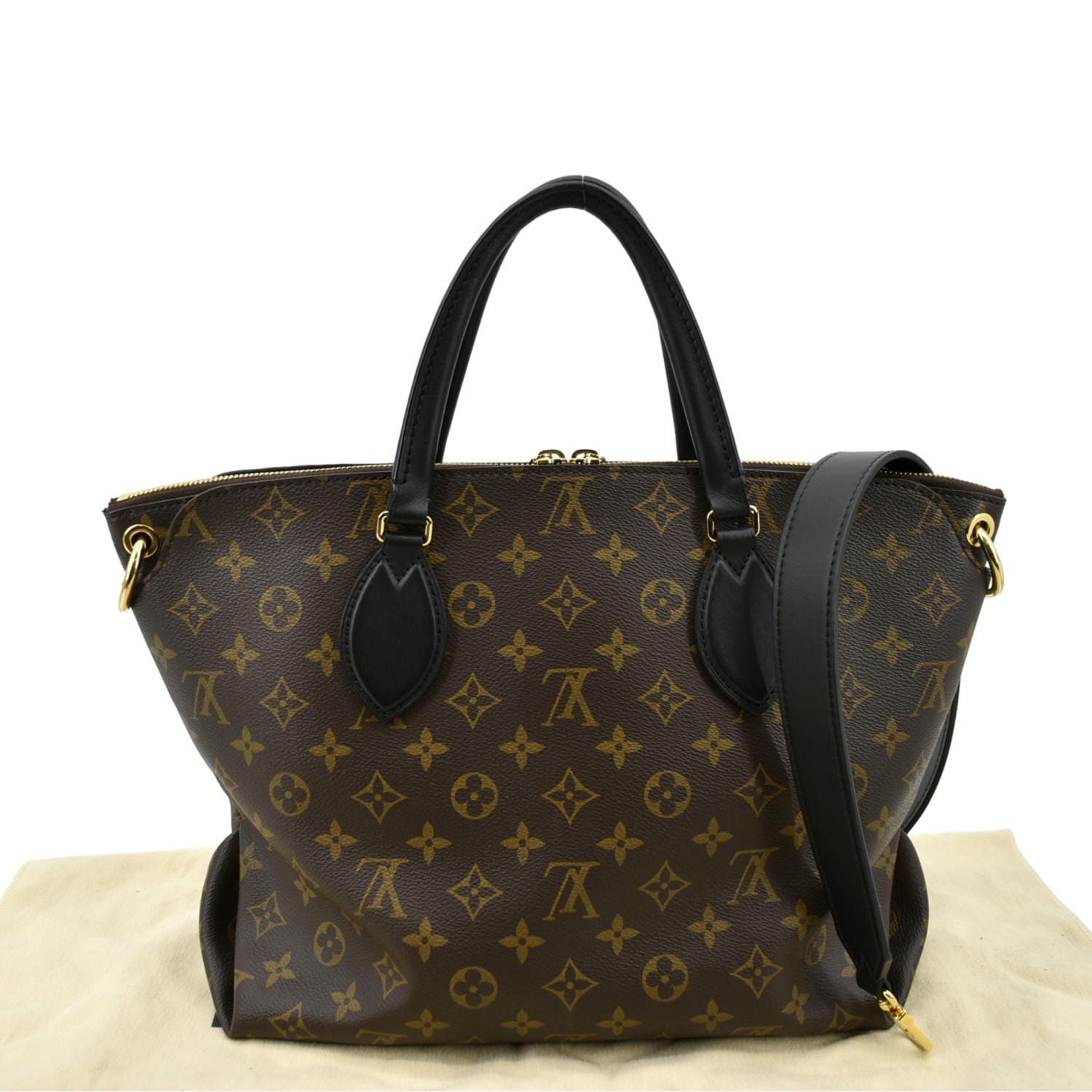 LOUIS VUITTON Flower Zipped MM Monogram Canvas Tote Bag Noir