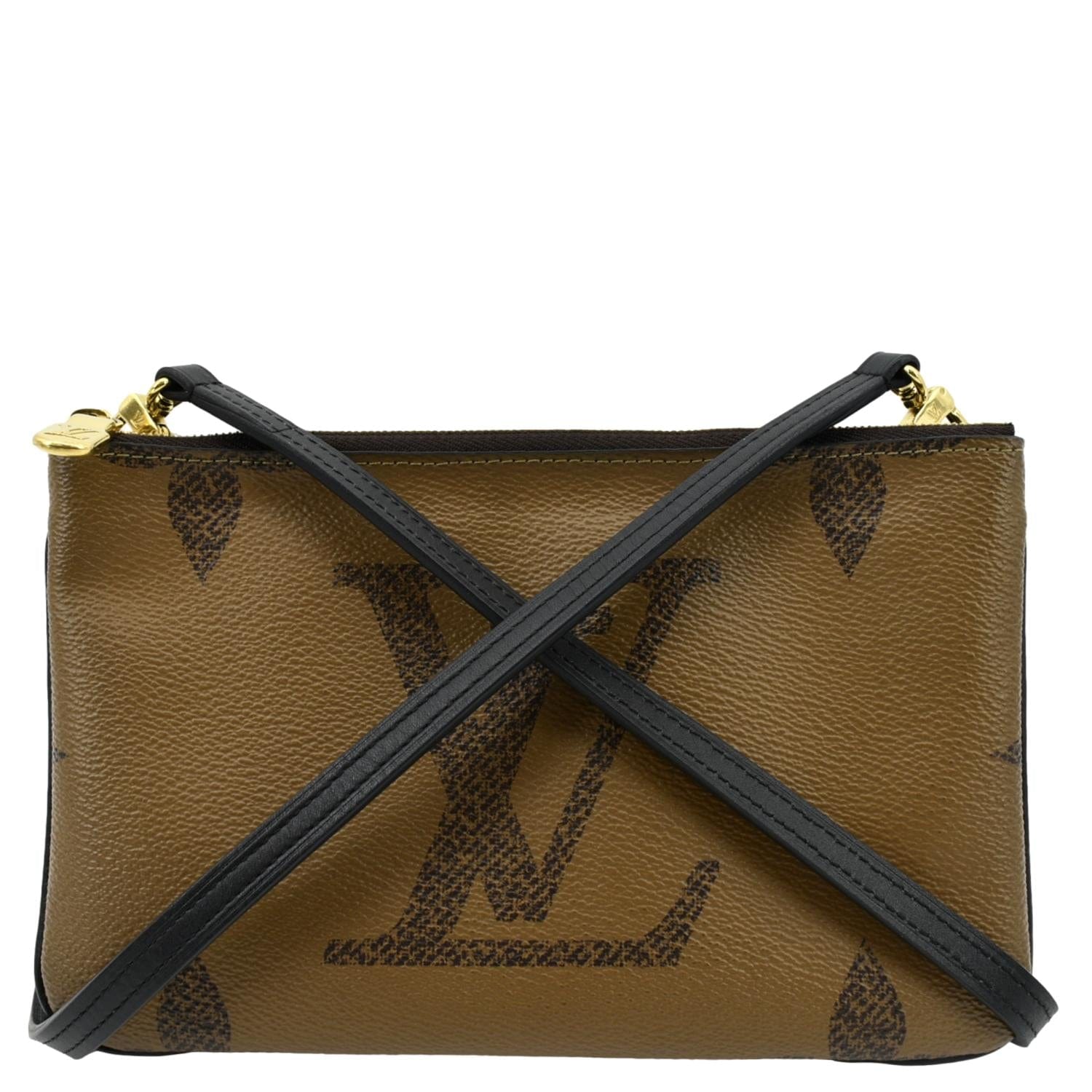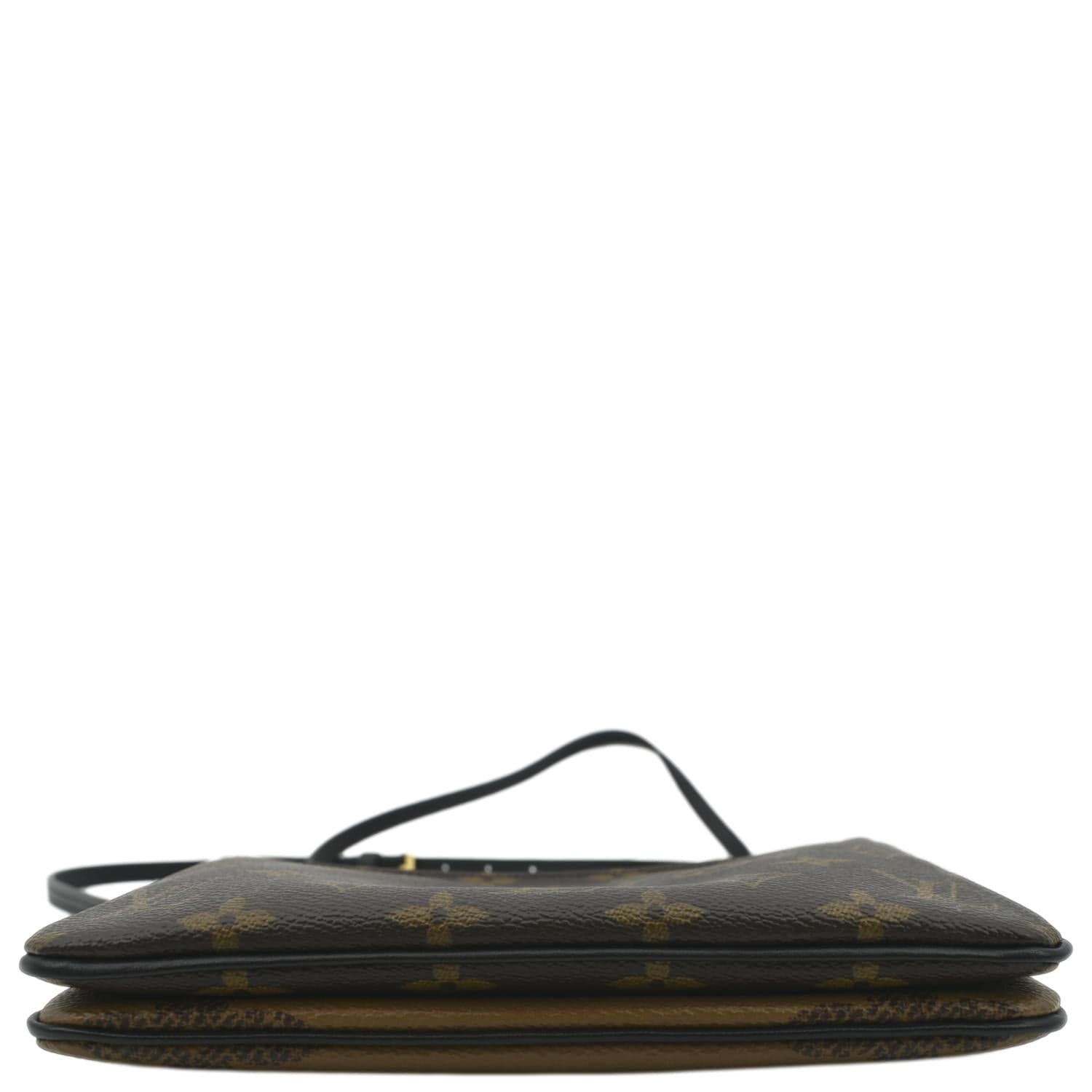 LOUIS VUITTON Double Zip Pochette Reverse Monogram Giant Crossbody Bag Brown