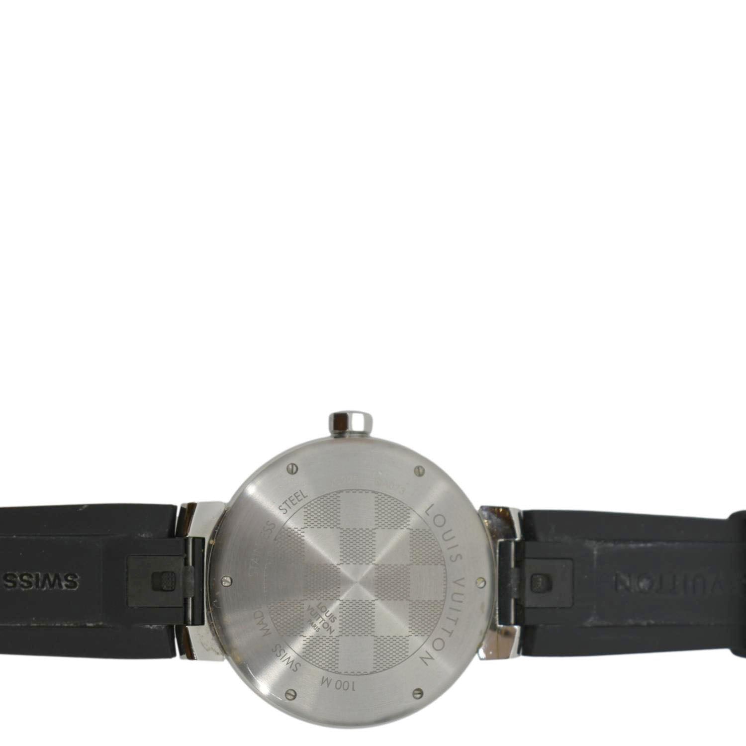 LOUIS VUITTON Icon Tambour Damier Graphite Rubber Strap Watch 30mm Black