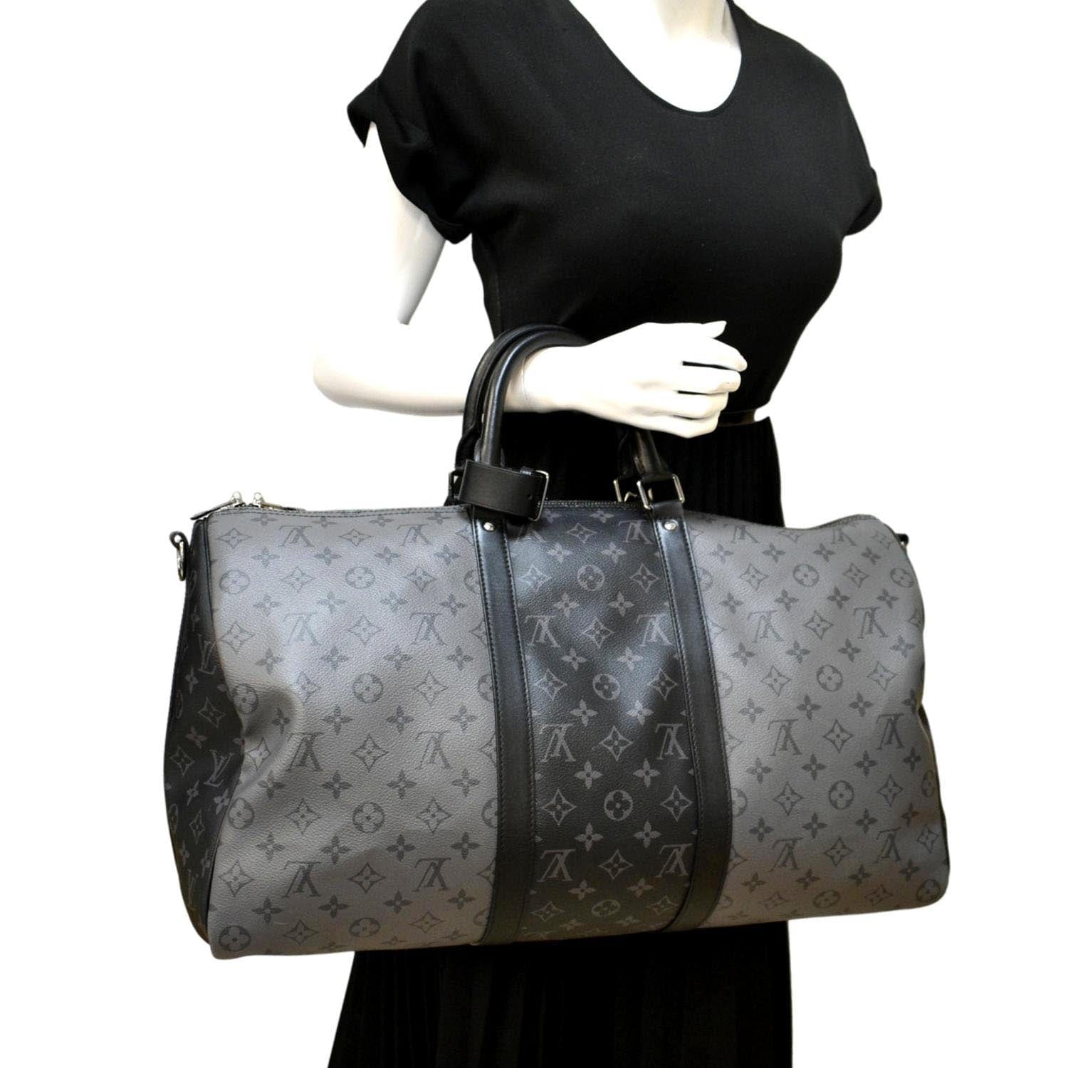 LOUIS VUITTON Keepall 50 Bandouliere Monogram Eclipse Travel Bag Black