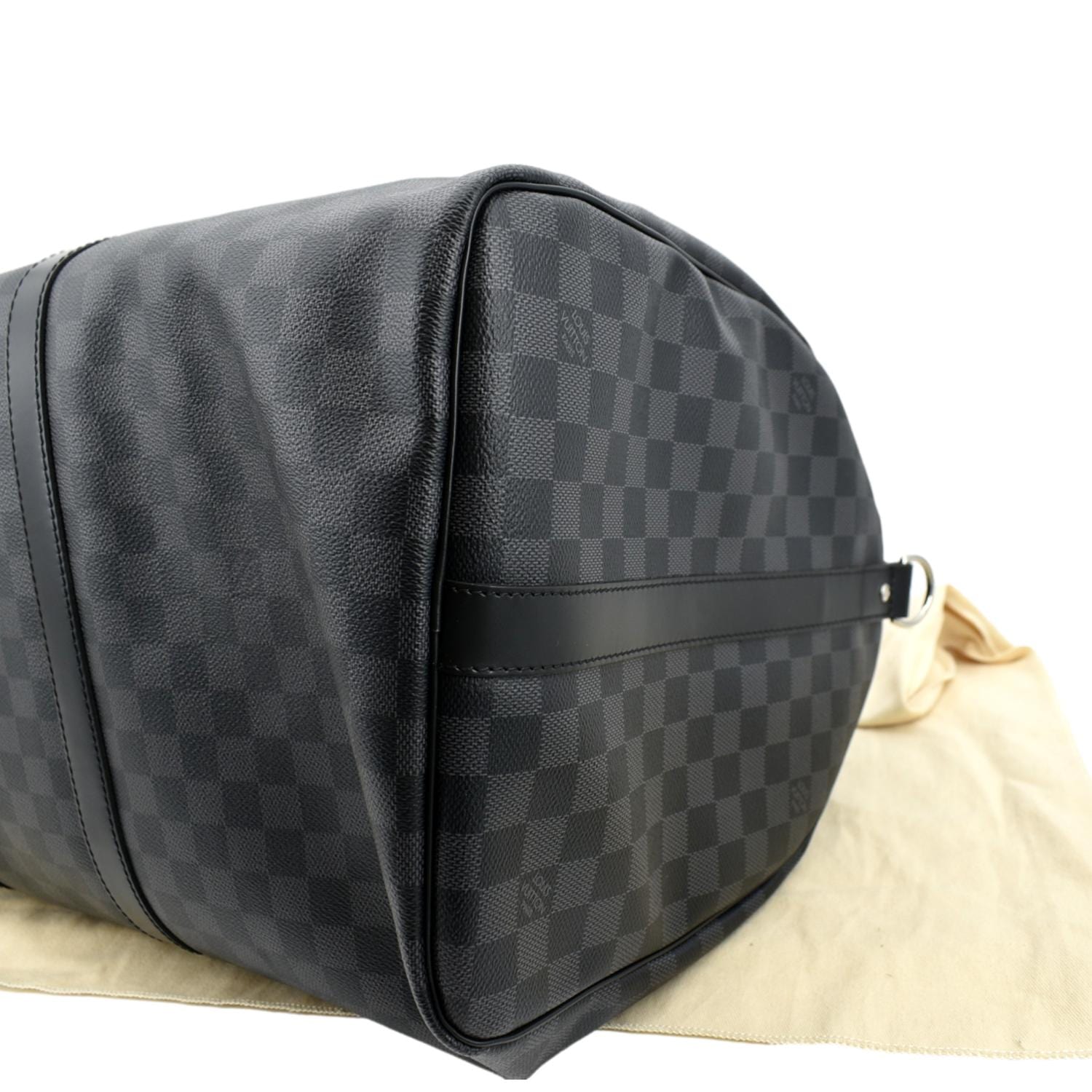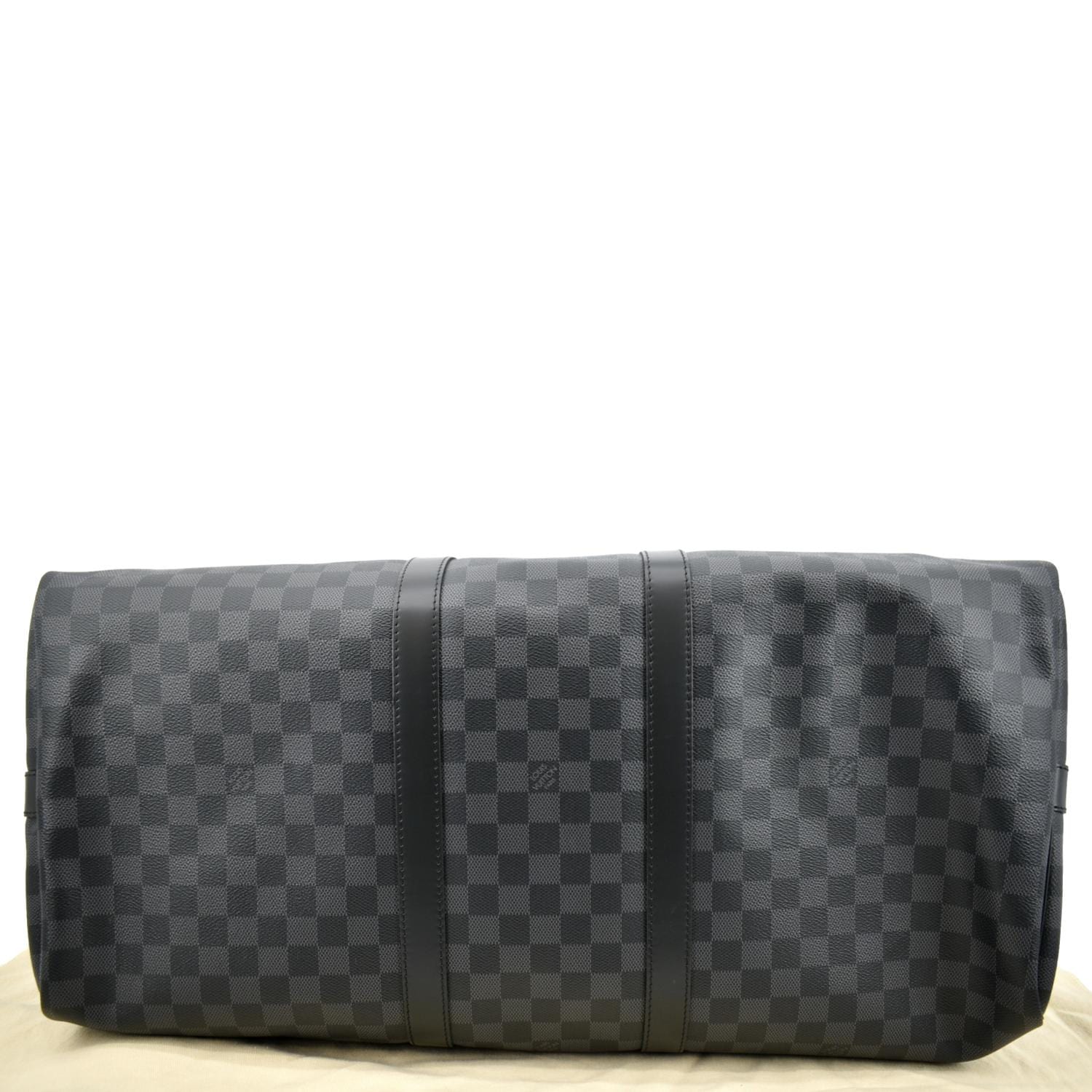 LOUIS VUITTON Keepall 55 Damier Graphite Bandouliere Travel Bag Black