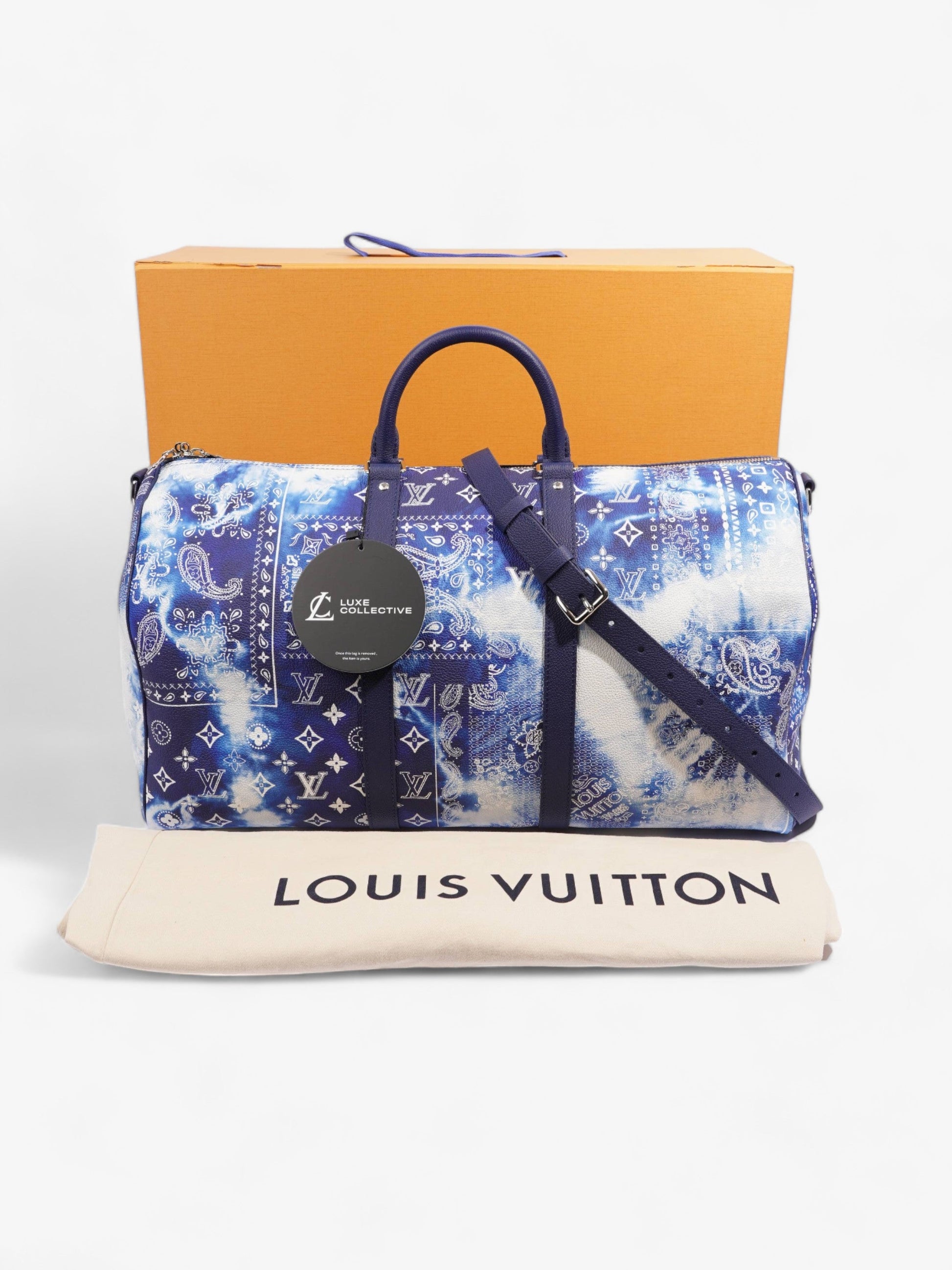 Louis Vuitton Limited Edition Bandana Keepall 50 Blue / White Leather