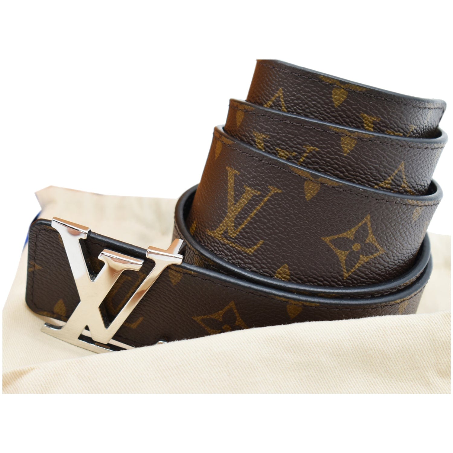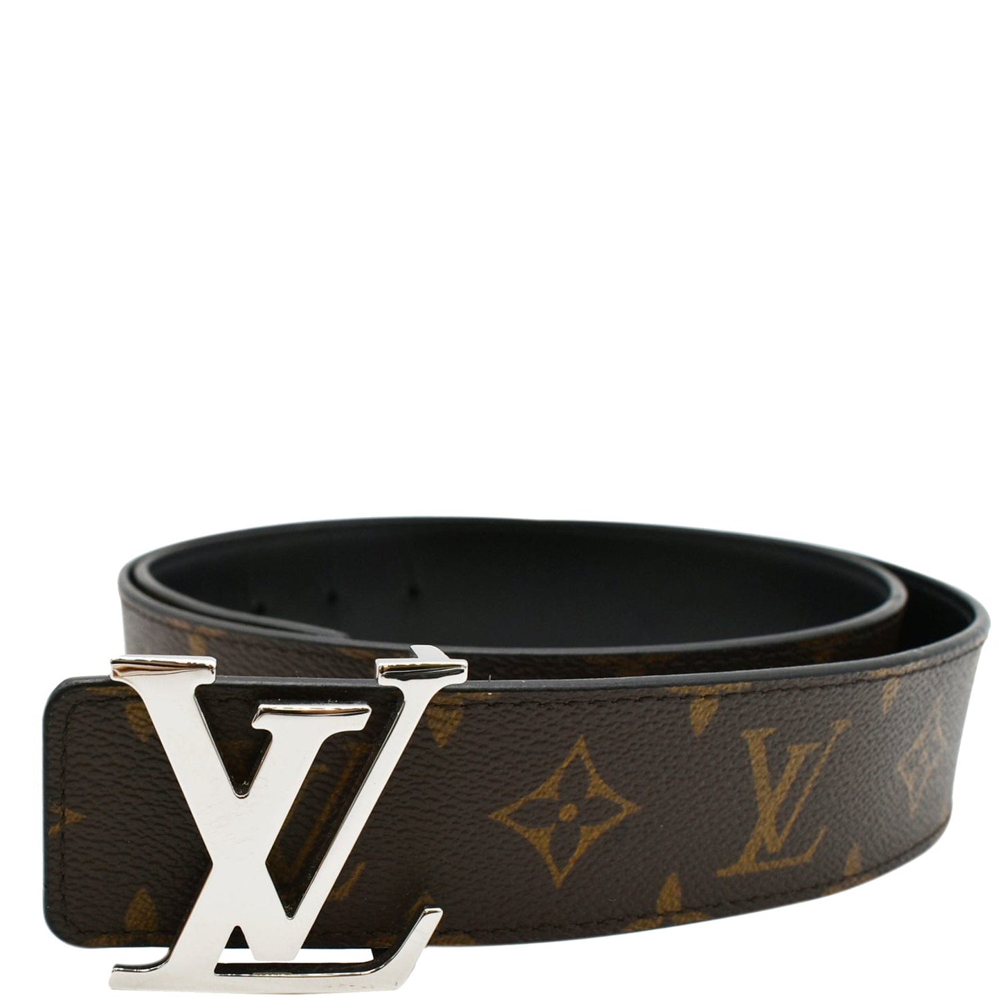 LOUIS VUITTON LV Initiales Monogram Canvas Silver Buckle Belt Brown