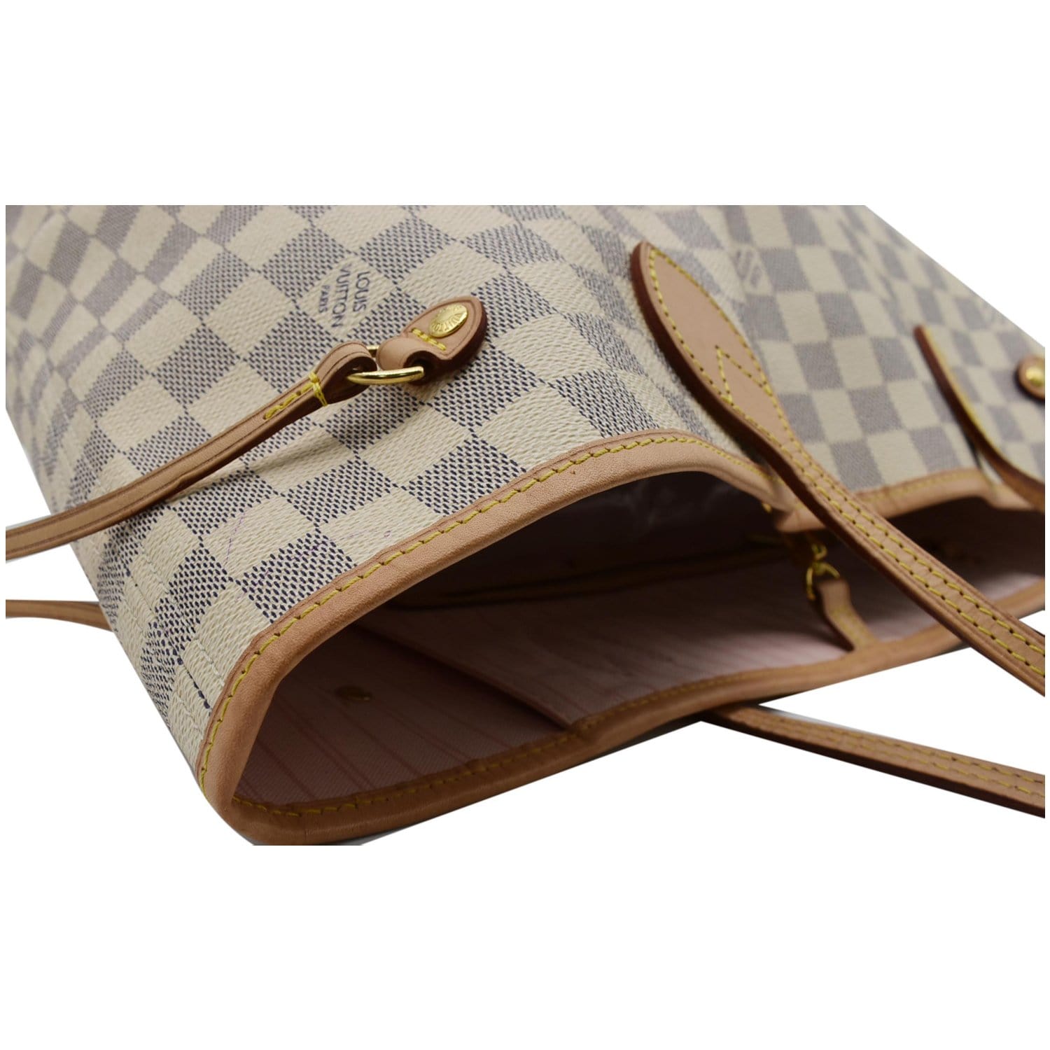 LOUIS VUITTON Neverfull MM Damier Azur Tote Shoulder Bag White