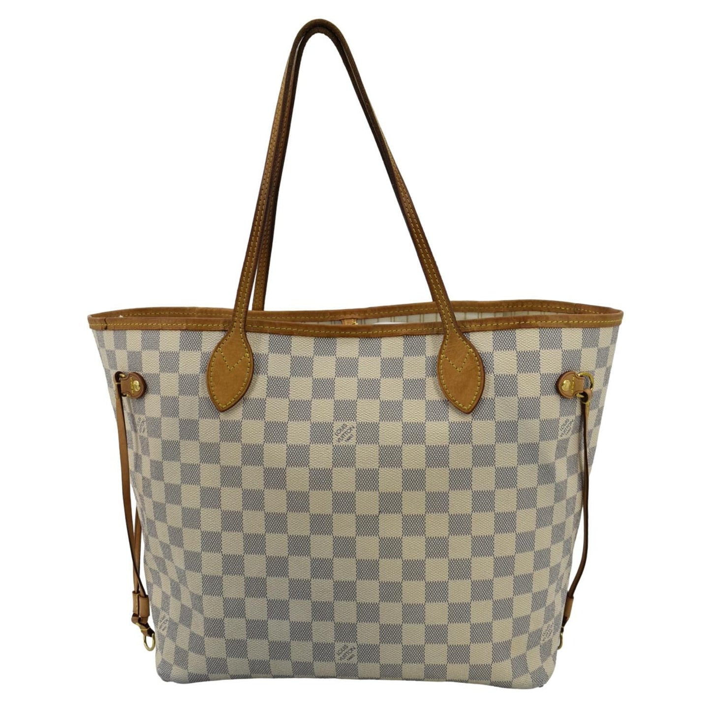 LOUIS VUITTON Neverfull MM Damier Azur Shoulder Bag White