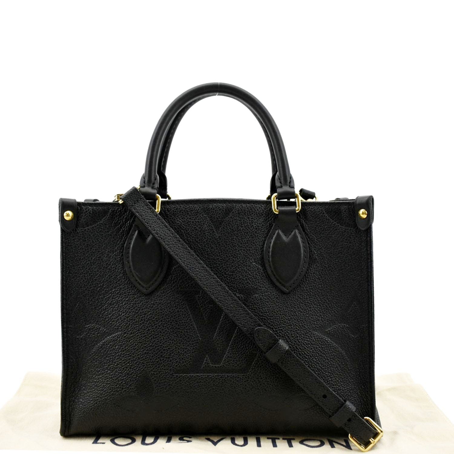LOUIS VUITTON Onthego PM Monogram Empreinte Tote Shoulder Bag Black