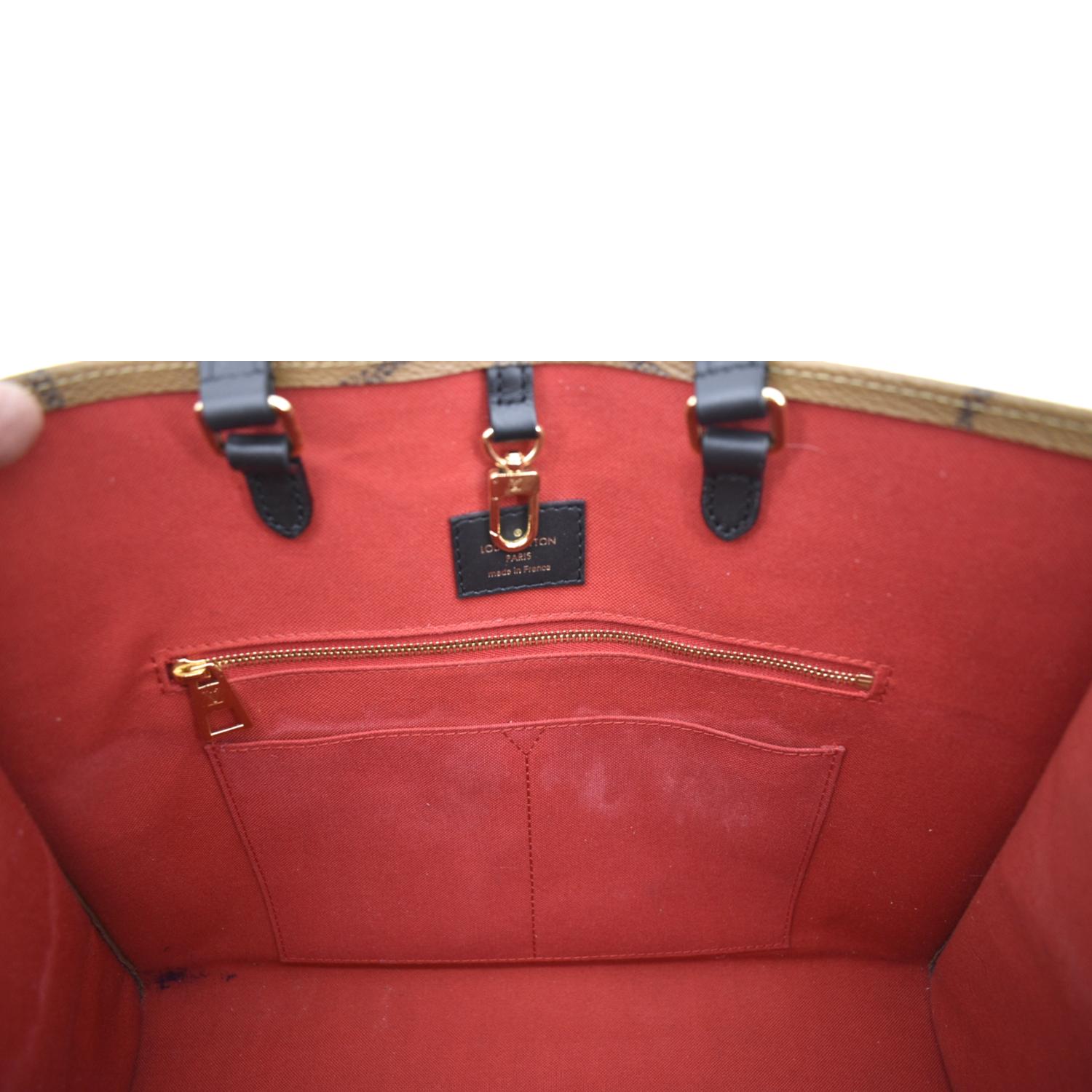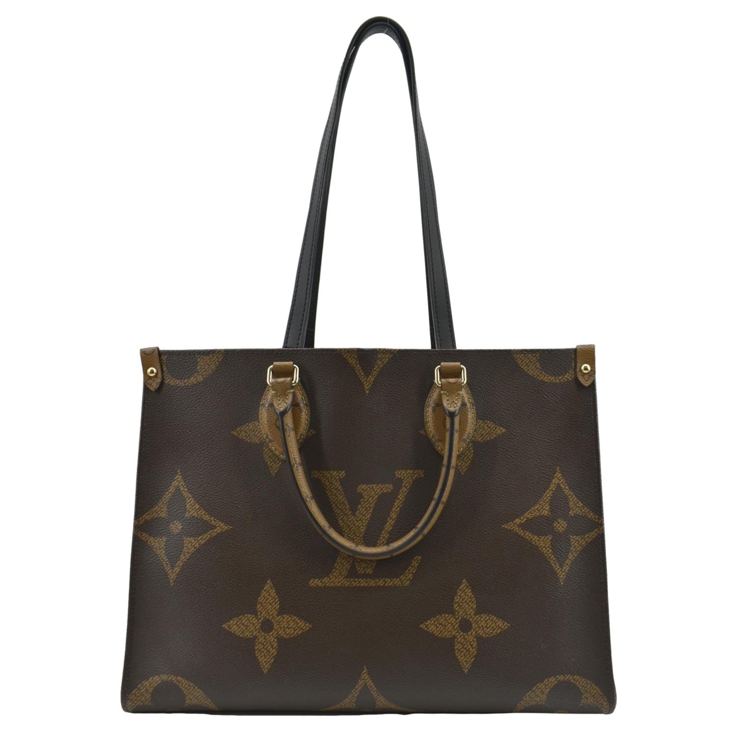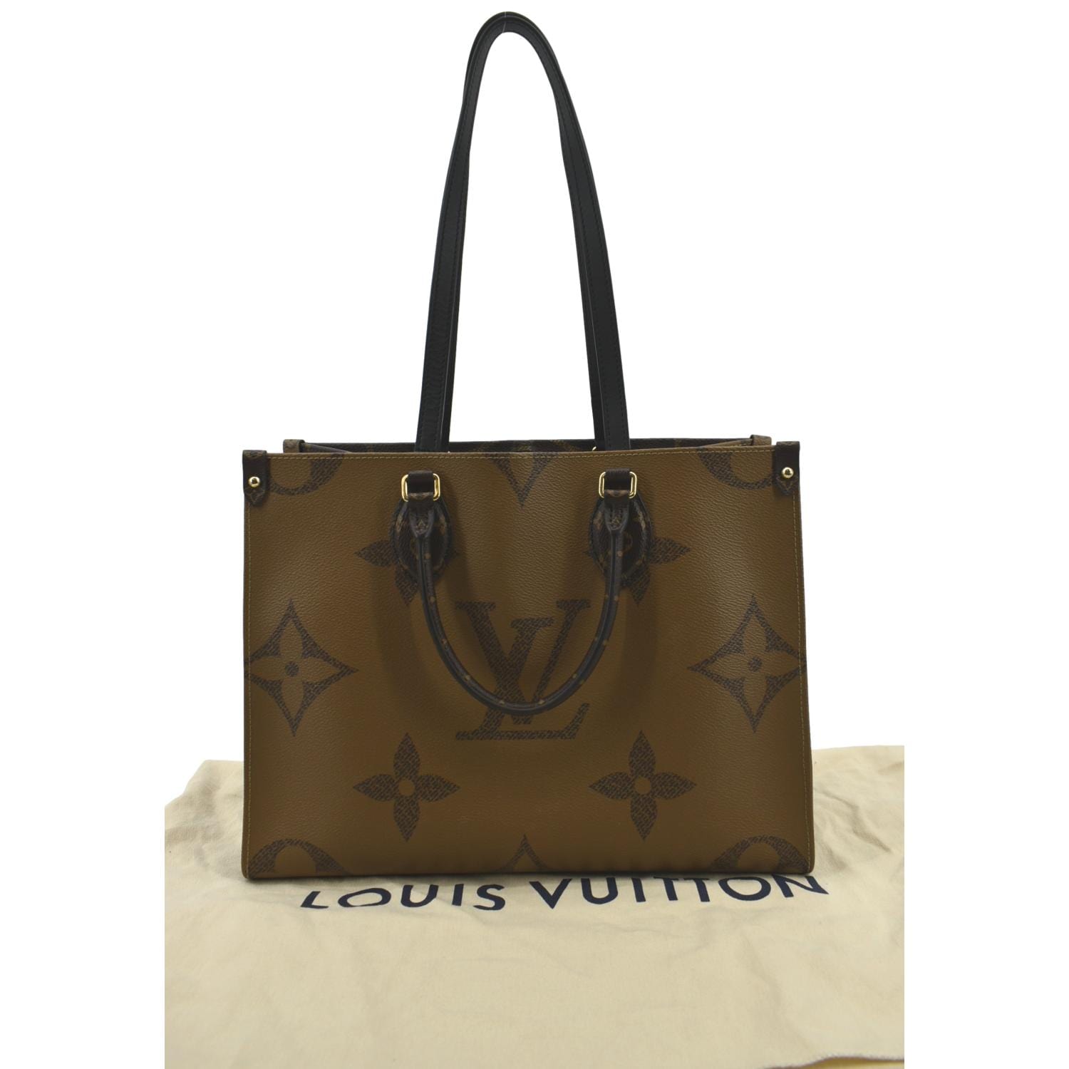 LOUIS VUITTON Onthego MM Giant Monogram Reverse Canvas Tote Shoulder Bag Brown