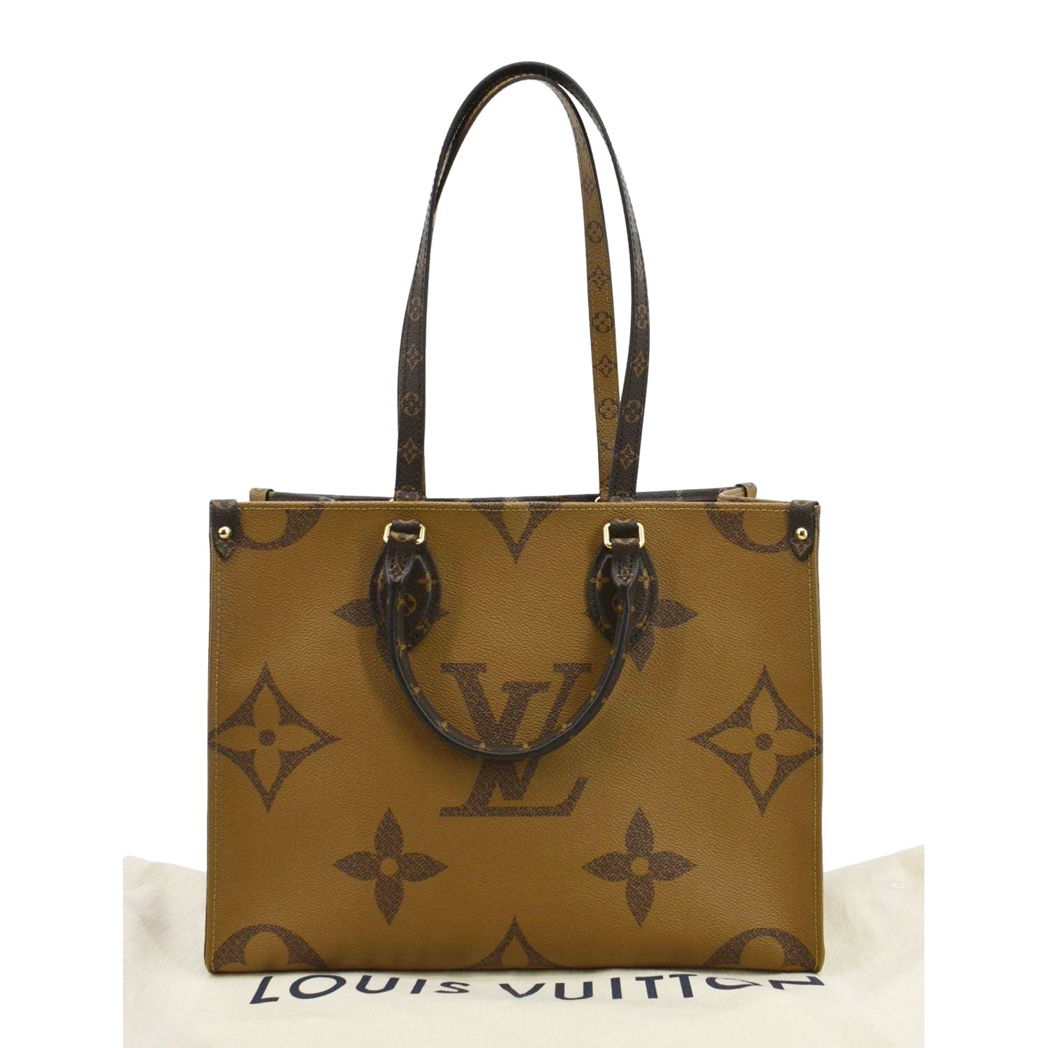 LOUIS VUITTON Onthego MM Giant Monogram Canvas Tote Shoulder Bag Brown