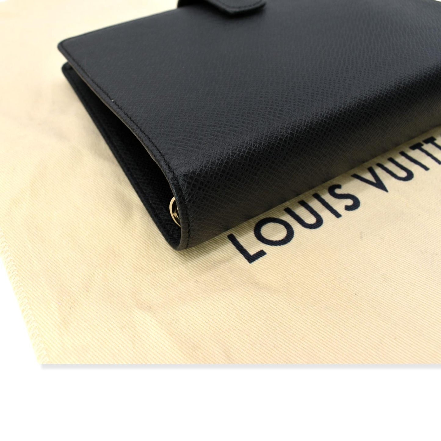 LOUIS VUITTON Taiga Leather Small Ring Agenda Cover Black