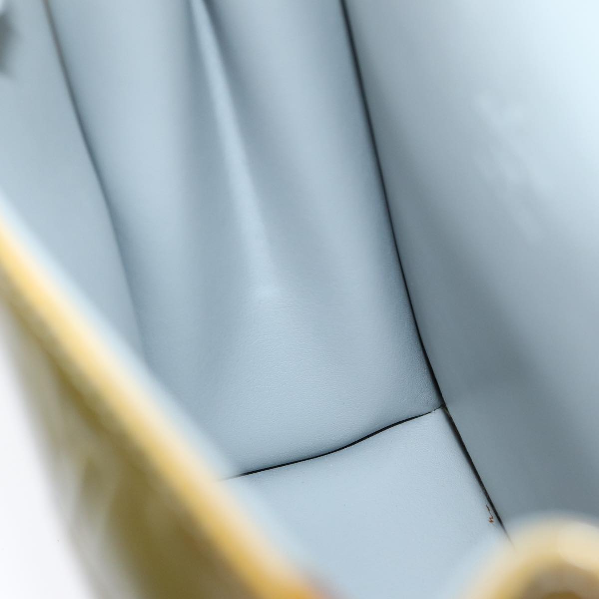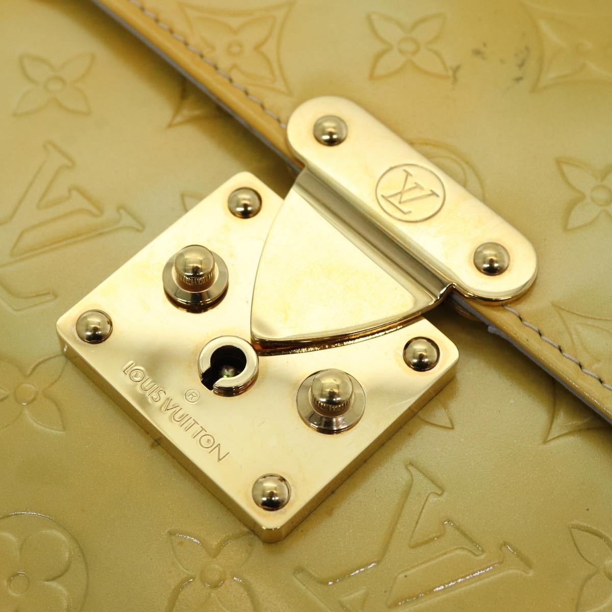 The Louis Vuitton Vernis Spring Street handbag, made from gris patent leather, features a chic and sophisticated design. The patent leather adds a glossy finish that enhances its stylish appeal.