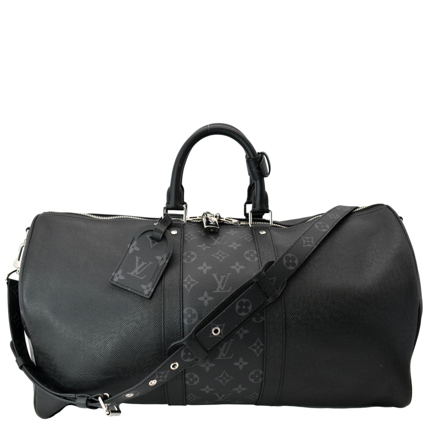 LOUIS VUITTON Keepall 50 Bandouliere Monogram Taiga Leather Travel Bag Black