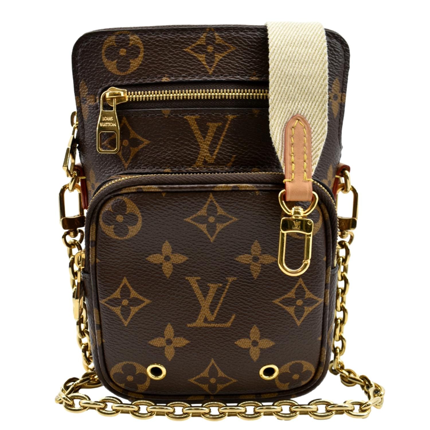 LOUIS VUITTON Utility Phone Sleeve Monogram Canvas Crossbody Bag Brown