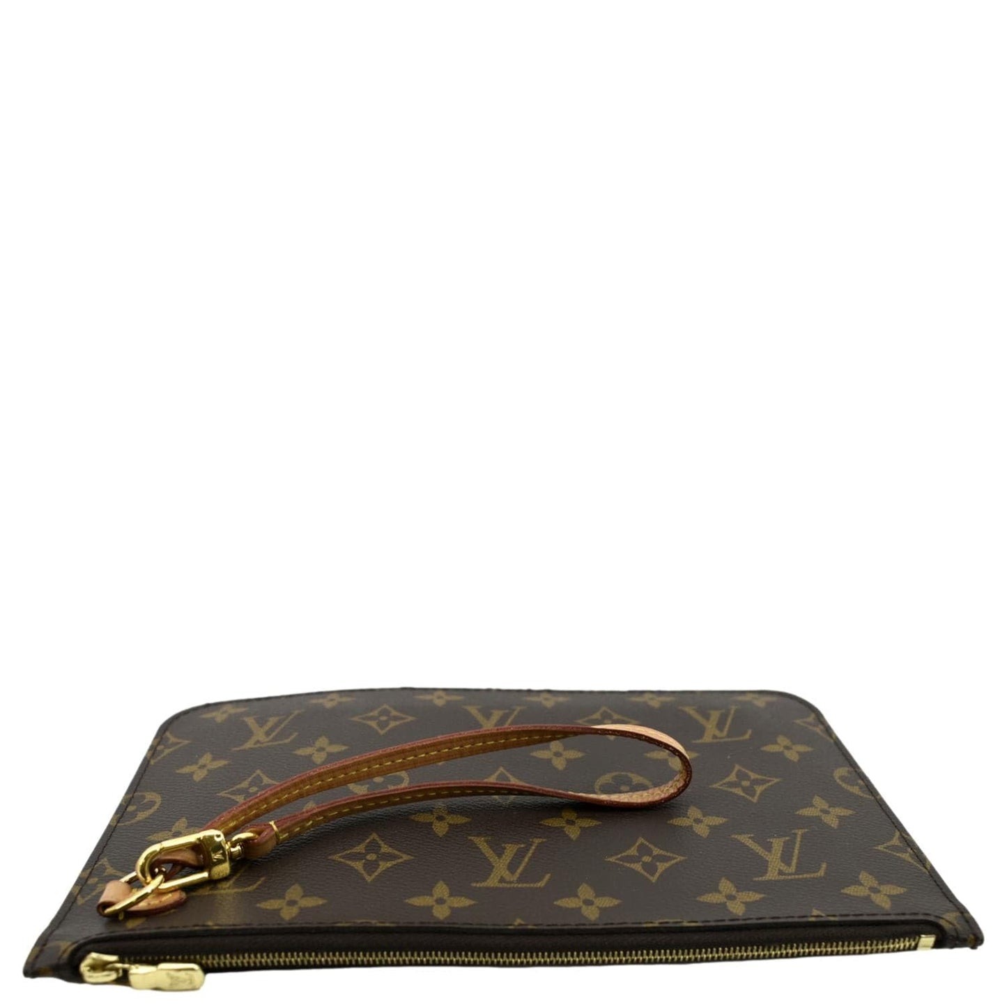 LOUIS VUITTON Neverfull Monogram Canvas Pochette Wristlet Pouch Brown