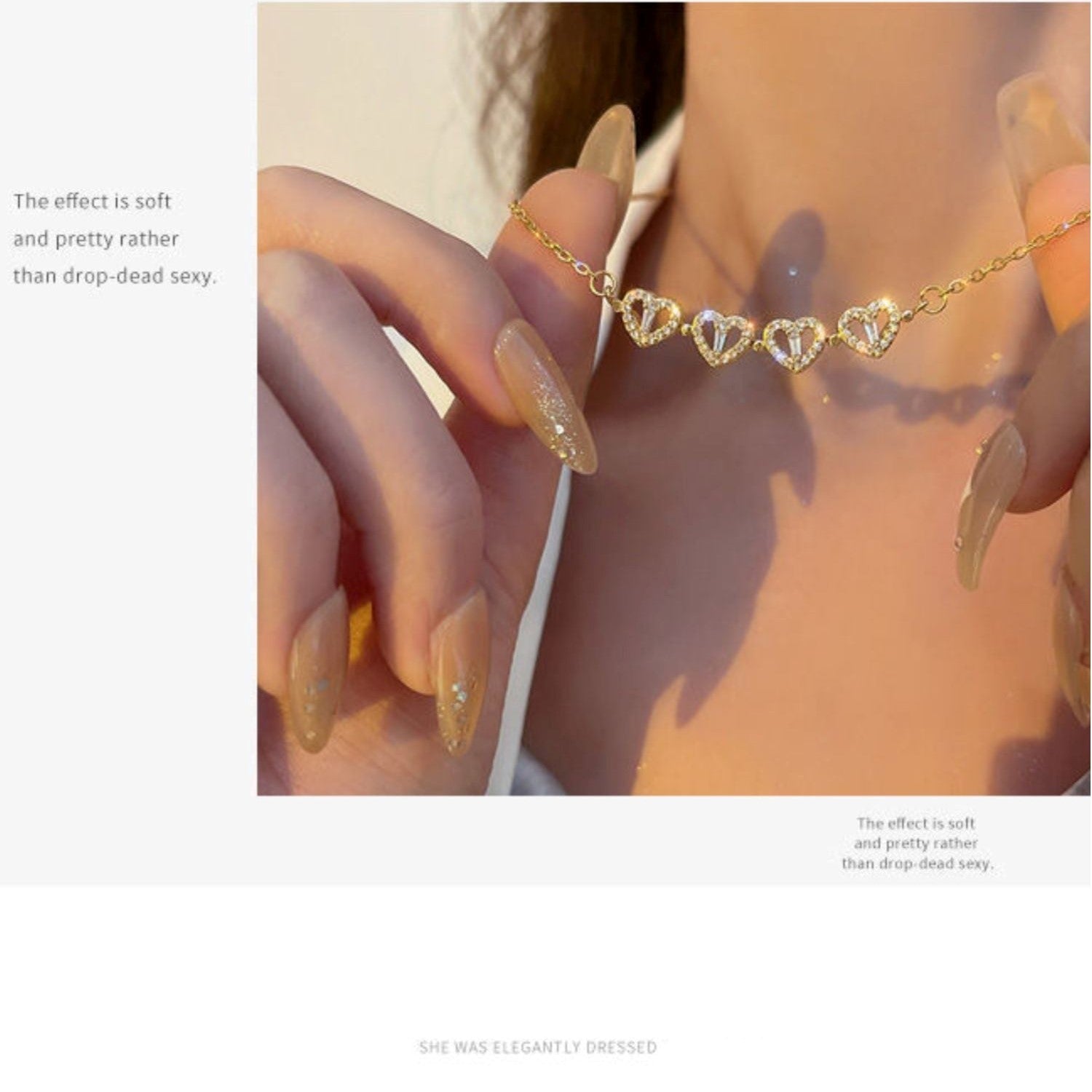 Handcrafted with 18k Gold Plating and finished with shiny Zircon Crystals, Clover Hearts Necklace adds elegant and sophisticated look to any outfit