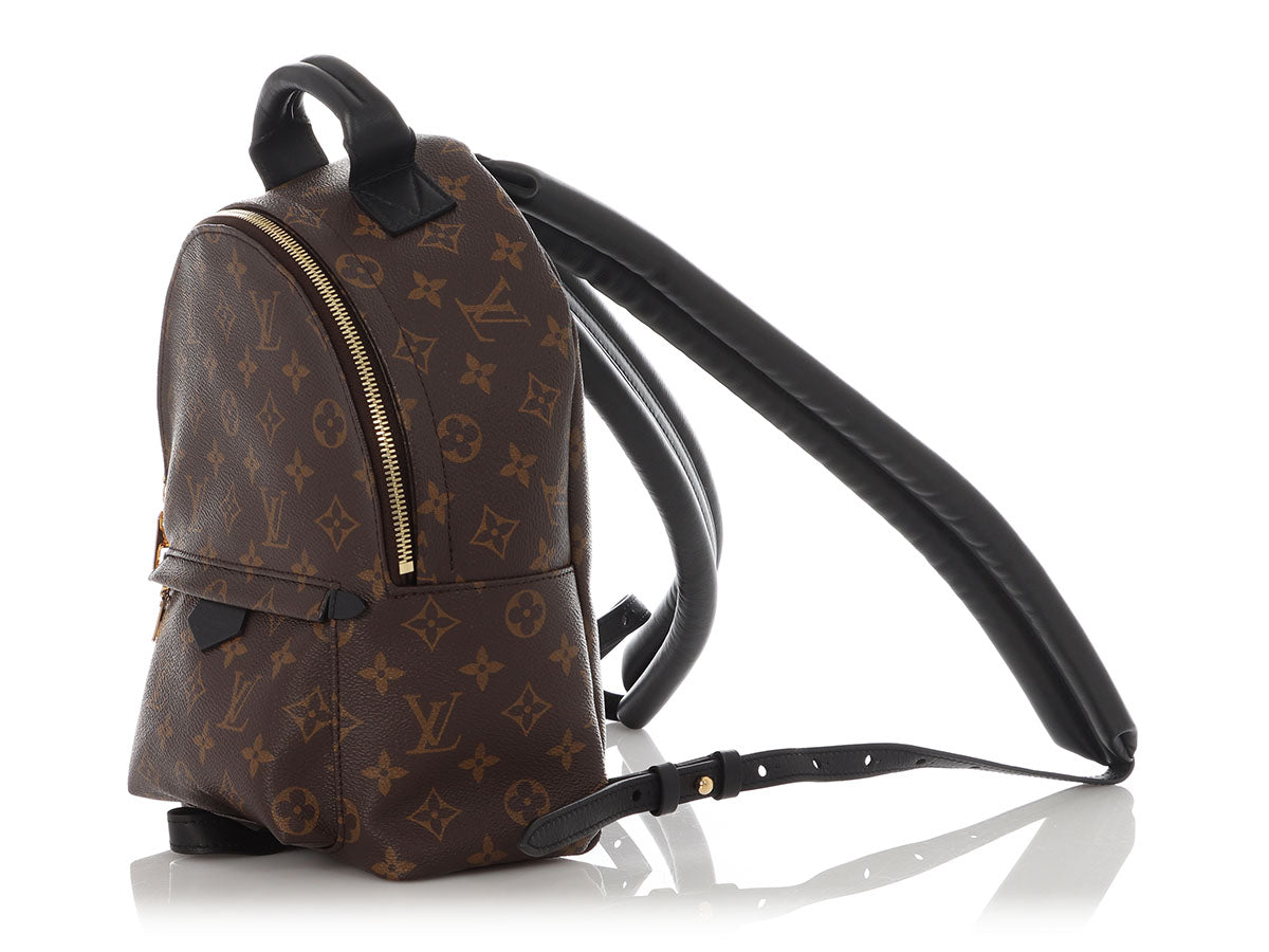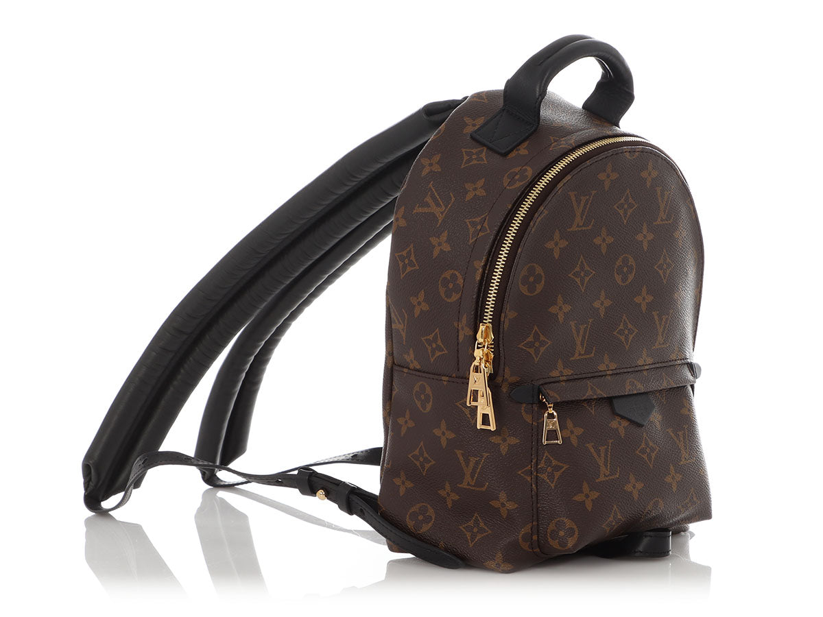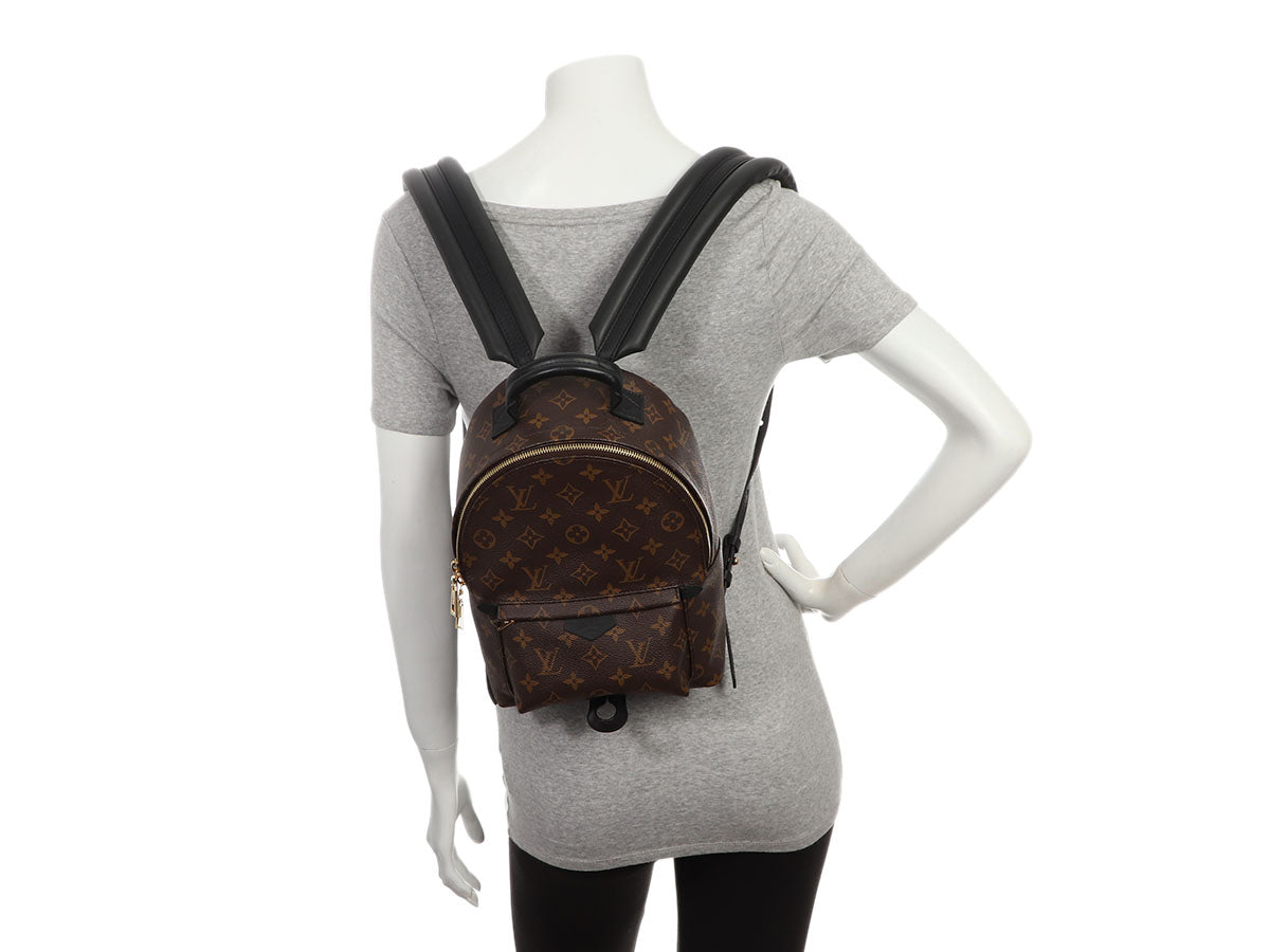 The adjustable padded straps on Louis Vuitton’s Monogram Palm Springs Backpack PM mean no load should be too heavy to shoulder! Those black-leather straps are shown with an 11.75-inch drop, while the body of the bag is made of brown coated canvas with gold logo hardware. There is one zipped pocket on the front and the double zipper on top opens up to reveal a black-fabric-lined interior with one slide pocket. In great condition with a dustbag, it has light scratches on the leather parts, hairline scratches on the hardware, and very light wear on the corners. This cool bookbag is an LV classic—how you fill it is entirely up to you!