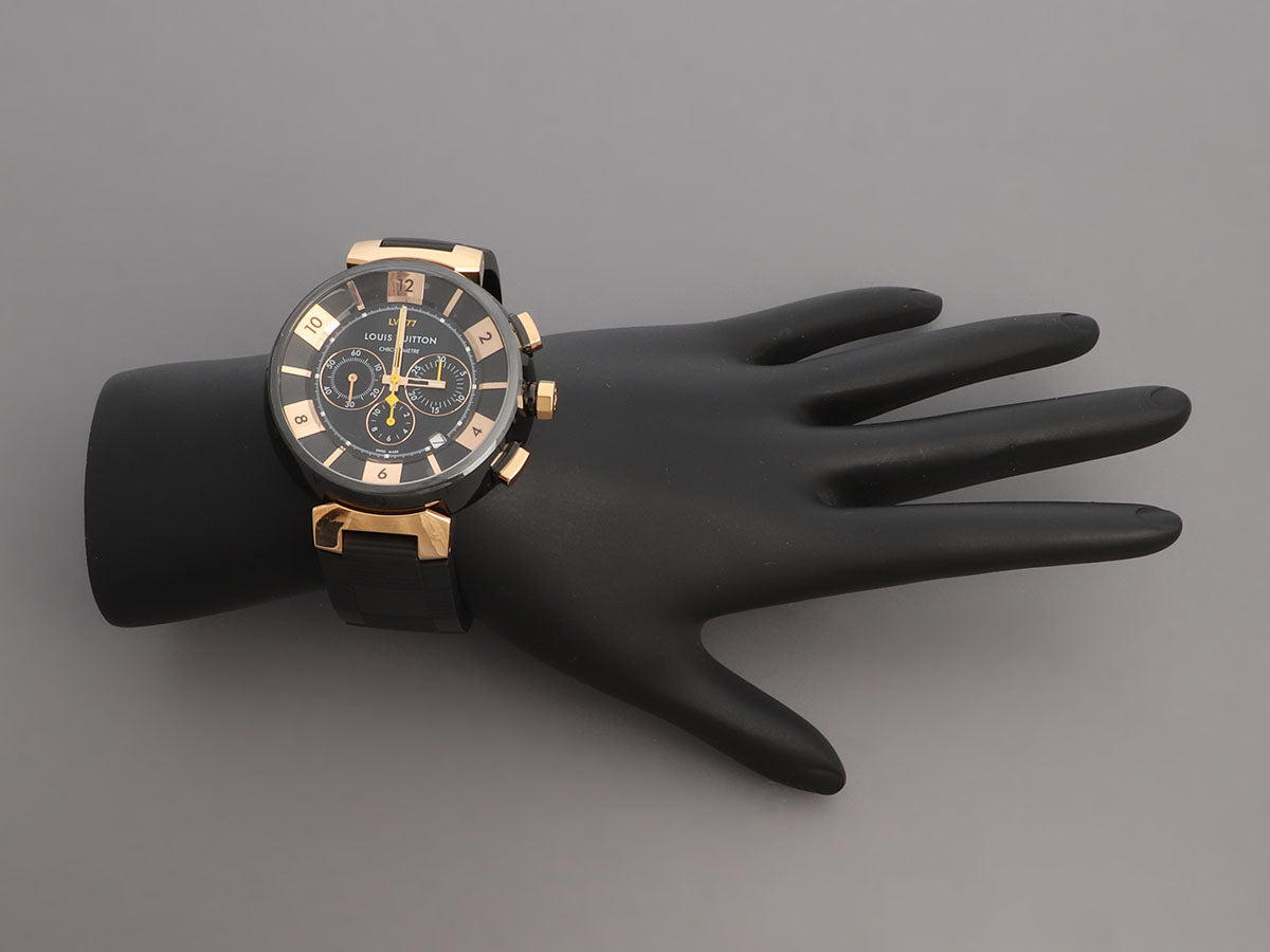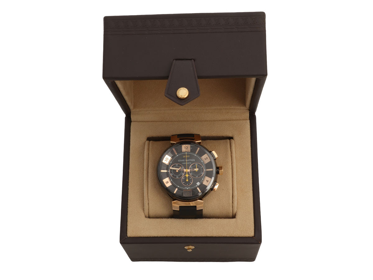 Louis Vuitton 18K Rose Gold Mens Tambour Chronograph Watch 41mm
