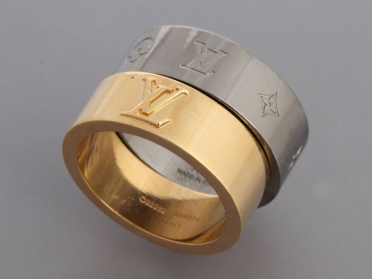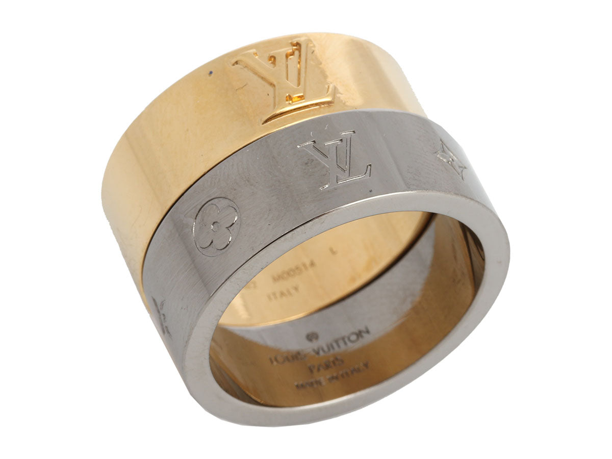 Treat your fingers to some logo love with Louis Vuitton’s Instinct Ring Pair! One ring is made of gold-tone metal with an LV on the front and “Louis Vuitton Paris” on the back, white the other is made of gunmetal-toned metal with LVs and fleurs around its band. In very good condition, they both have scratches, although the gold ring has a bit more. Worn together or on their own, they’ll make a chic addition to your jewelry box!