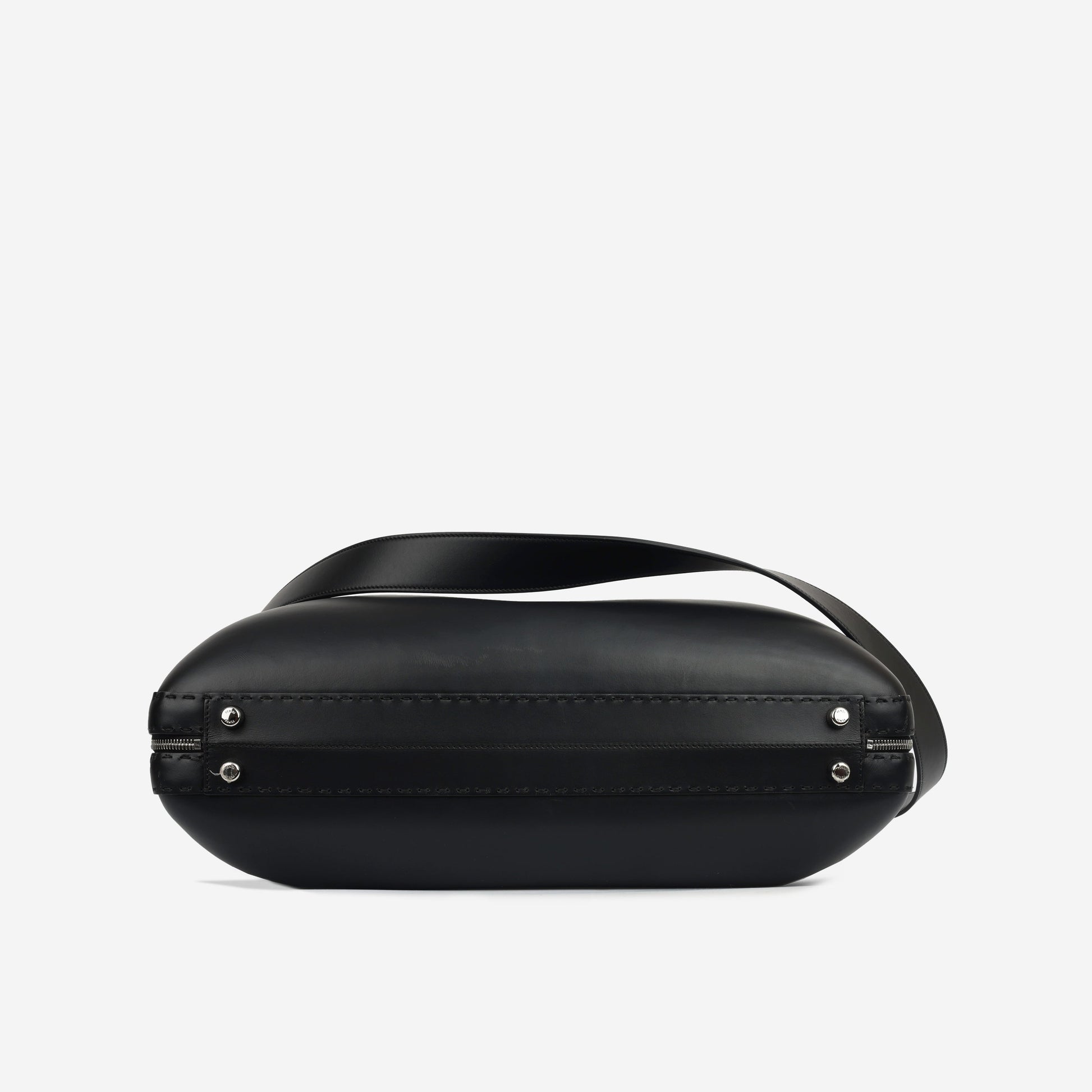 Crafted from premium black smooth calfskin, this suitcase embodies elegance and durability. Its standout feature is the iconic "FF" logo prominently displayed at the front, symbolising a blend of fashion-forward design and timeless appeal. Enhanced with silver hardware and two distinctive curved leather straps, the M Suitcase FF Travel is both a practical and stylish companion for your journeys.