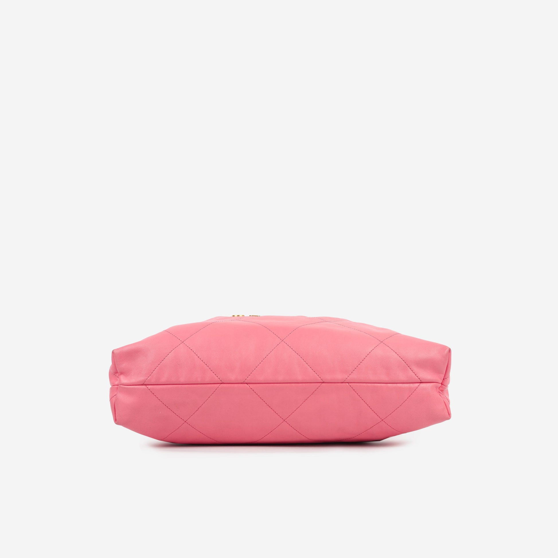 Carefully crafted from pink quilted shiny calfskin leather, Chanel presents their 22 Tote bag. The chicest item for the lady that wants to carry everything around with them, this bag features Chanels classic interwoven back straps along with top handles to carry it handheld. This piece from 2022 is a well worthy addition to any luxury handbag collection.