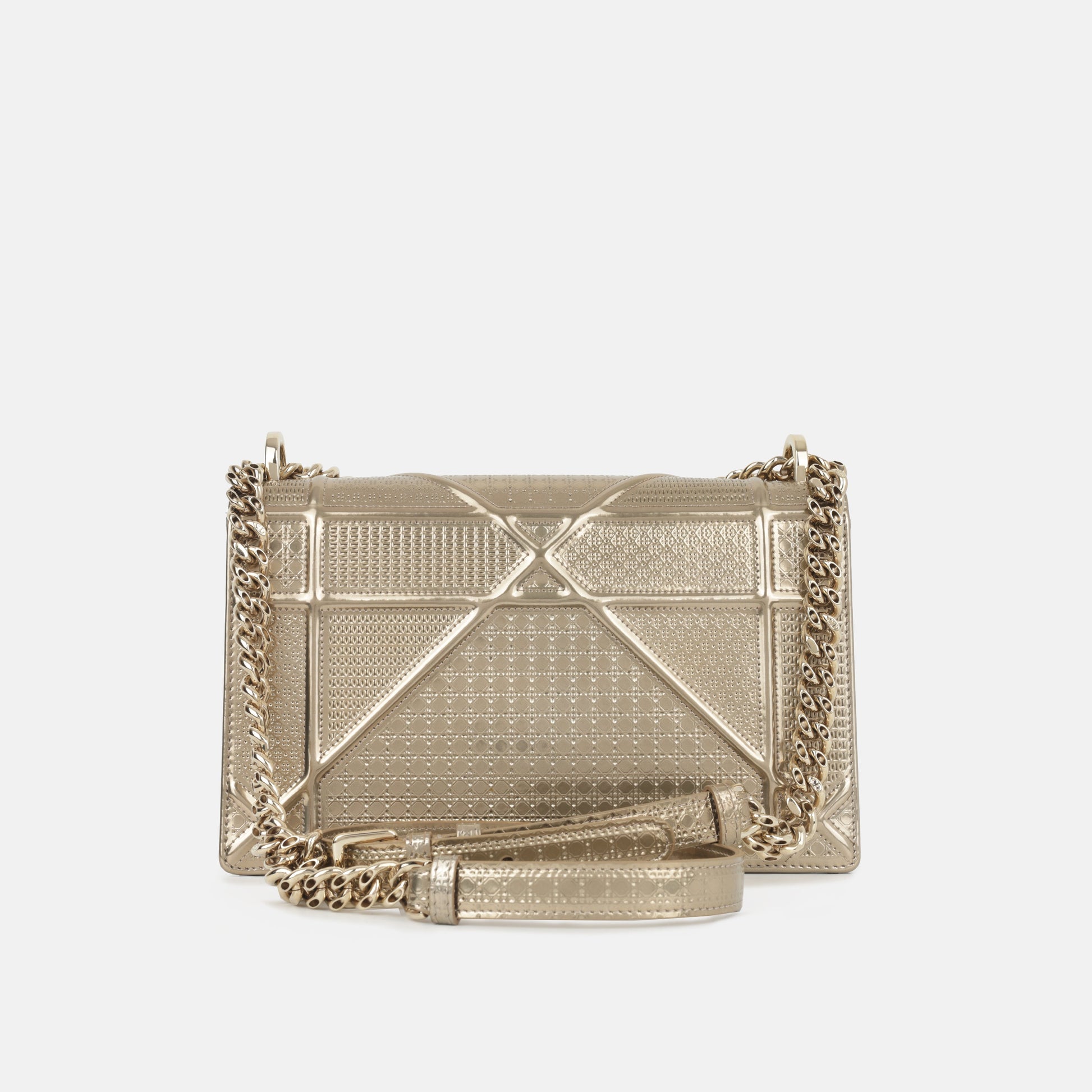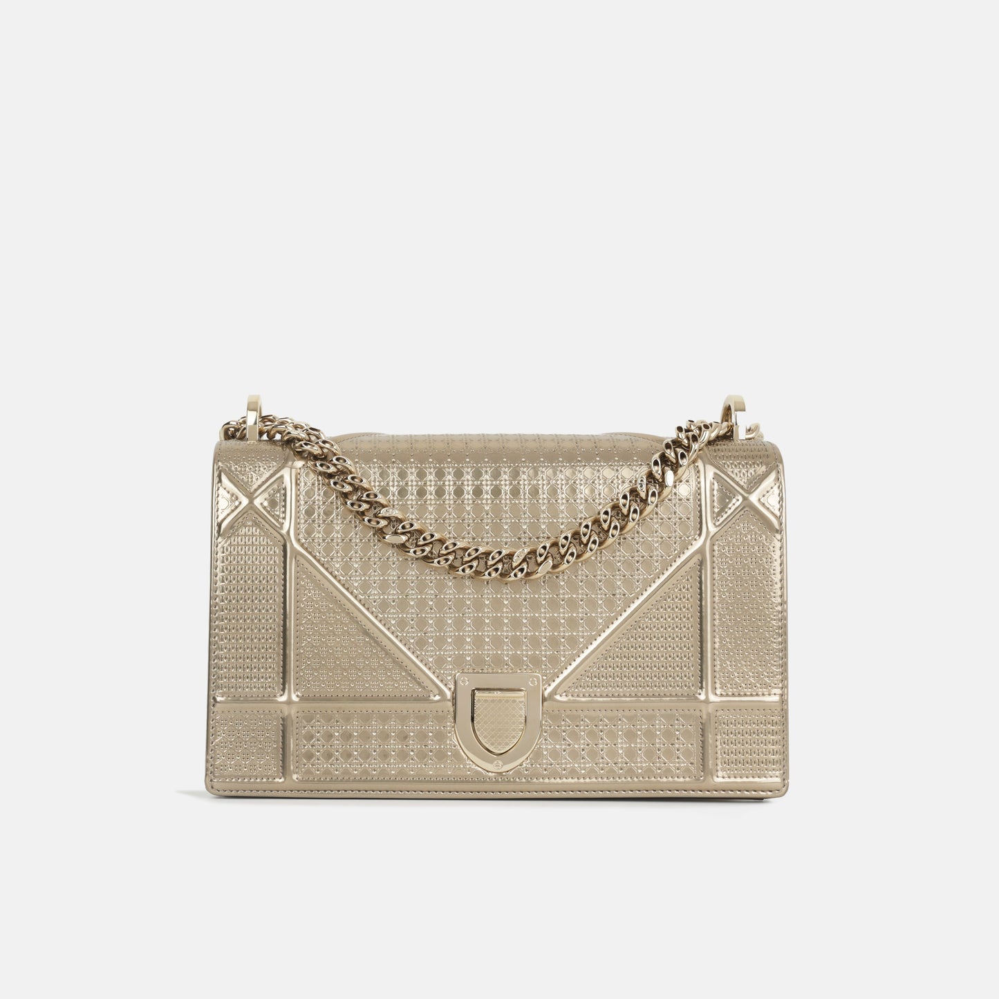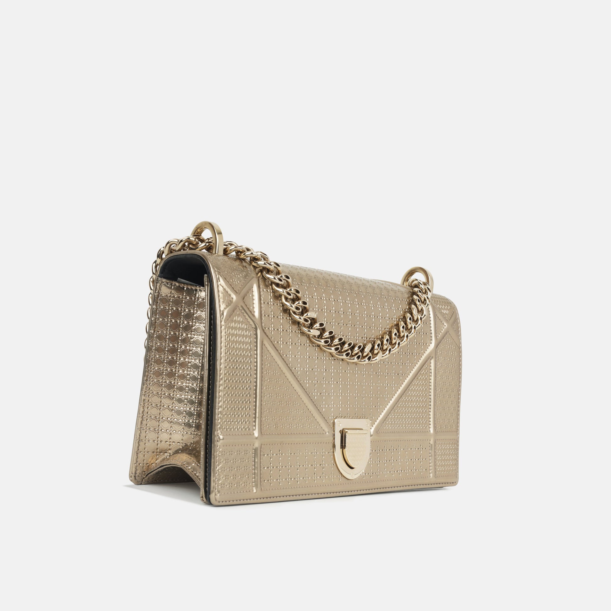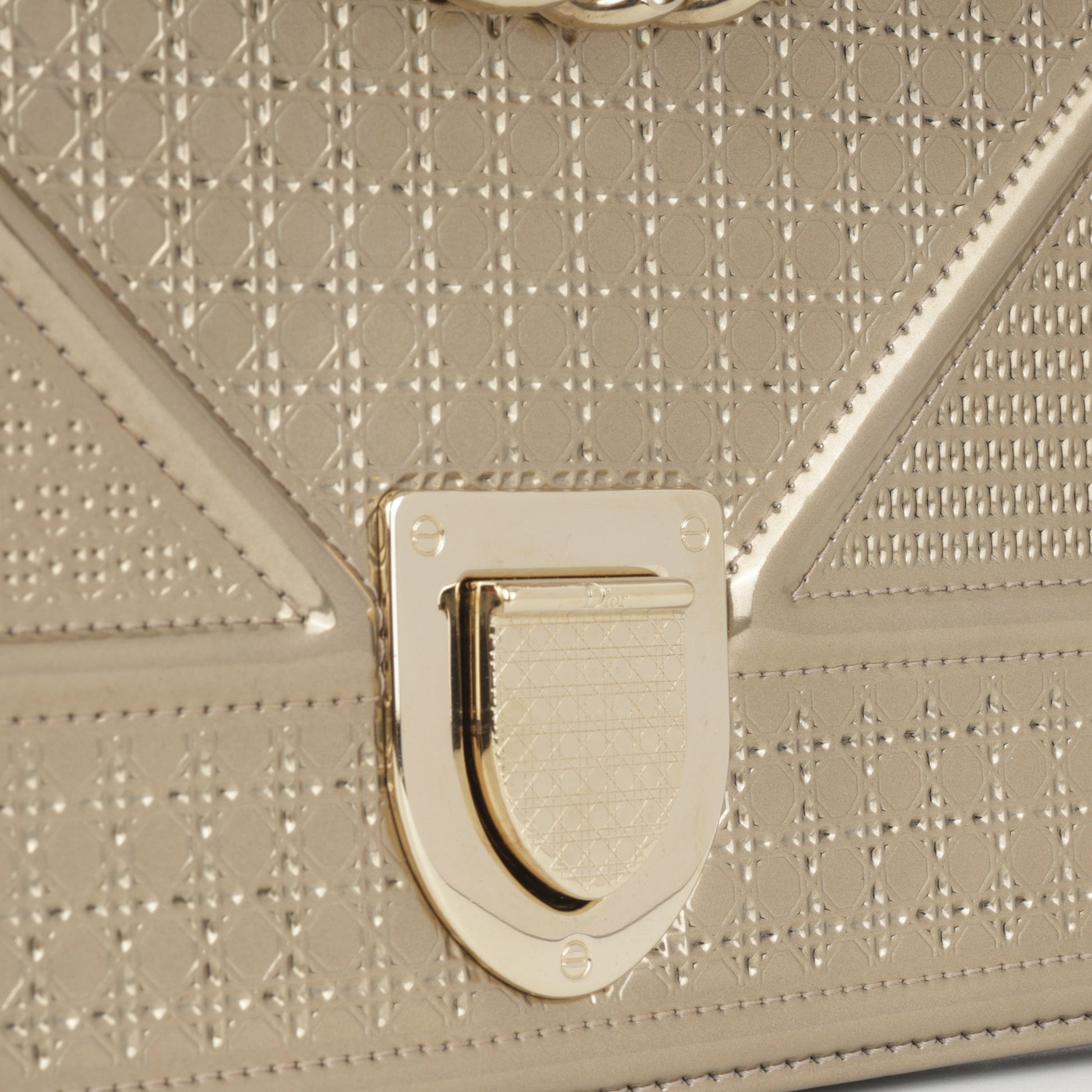 - Champagne patent leather with cannage stitching