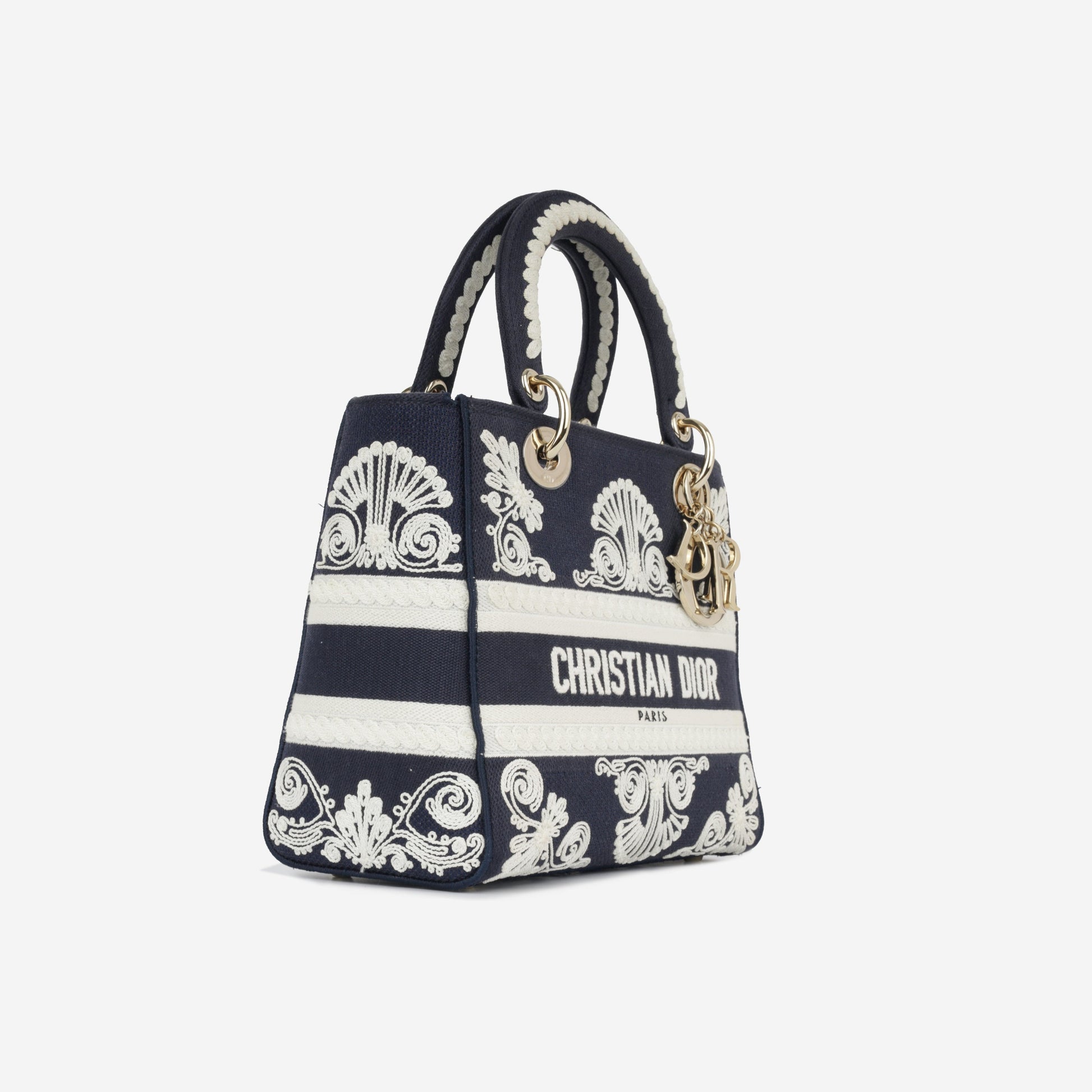Crafted with precision in 2021, the Dior Lady D-Lite bag is a remarkable testament to the enduring allure of Dior's classic style, seamlessly interwoven with a contemporary twist. This iconic piece is made from durable blue canvas, ensuring it stands the test of time while providing a distinct, fashionable statement.