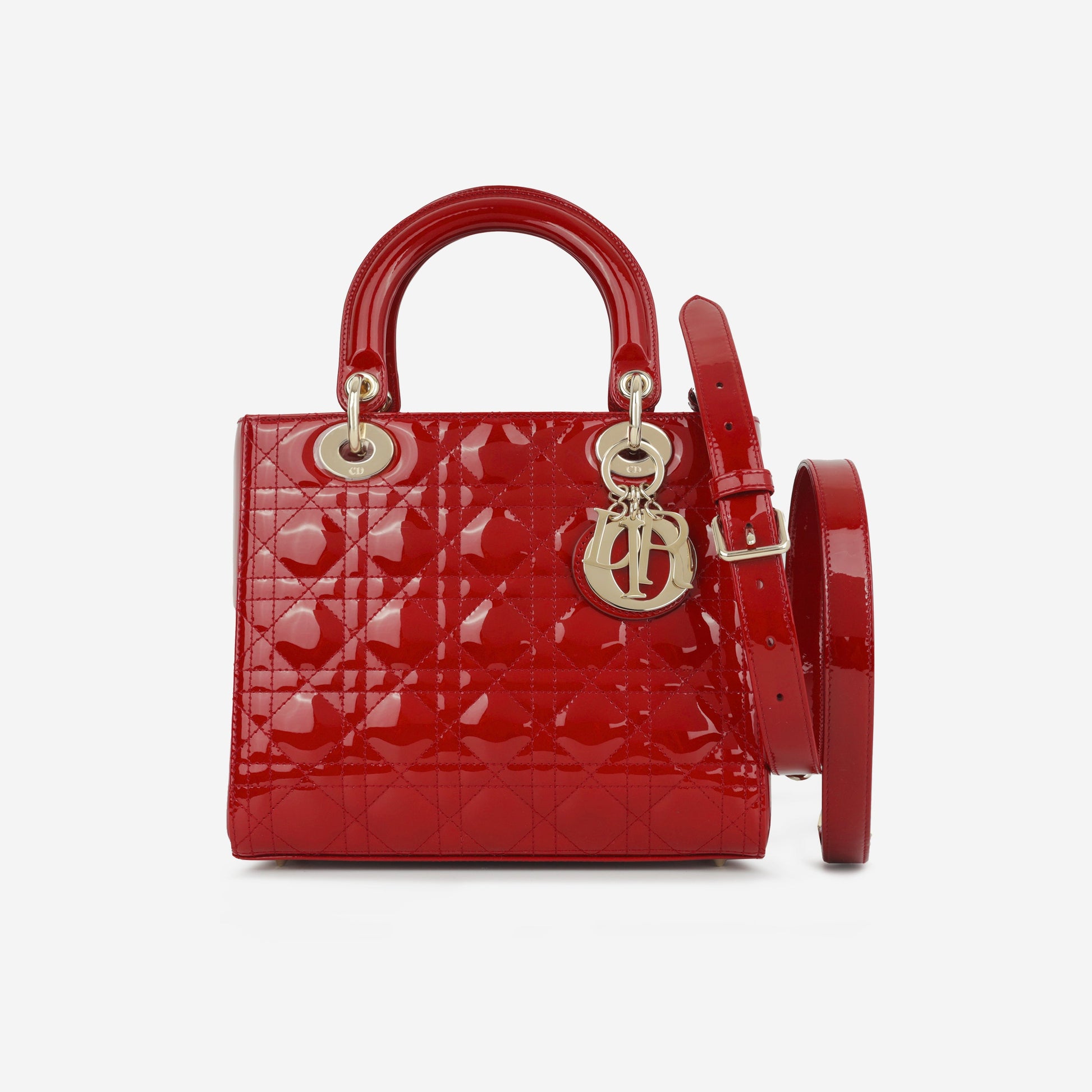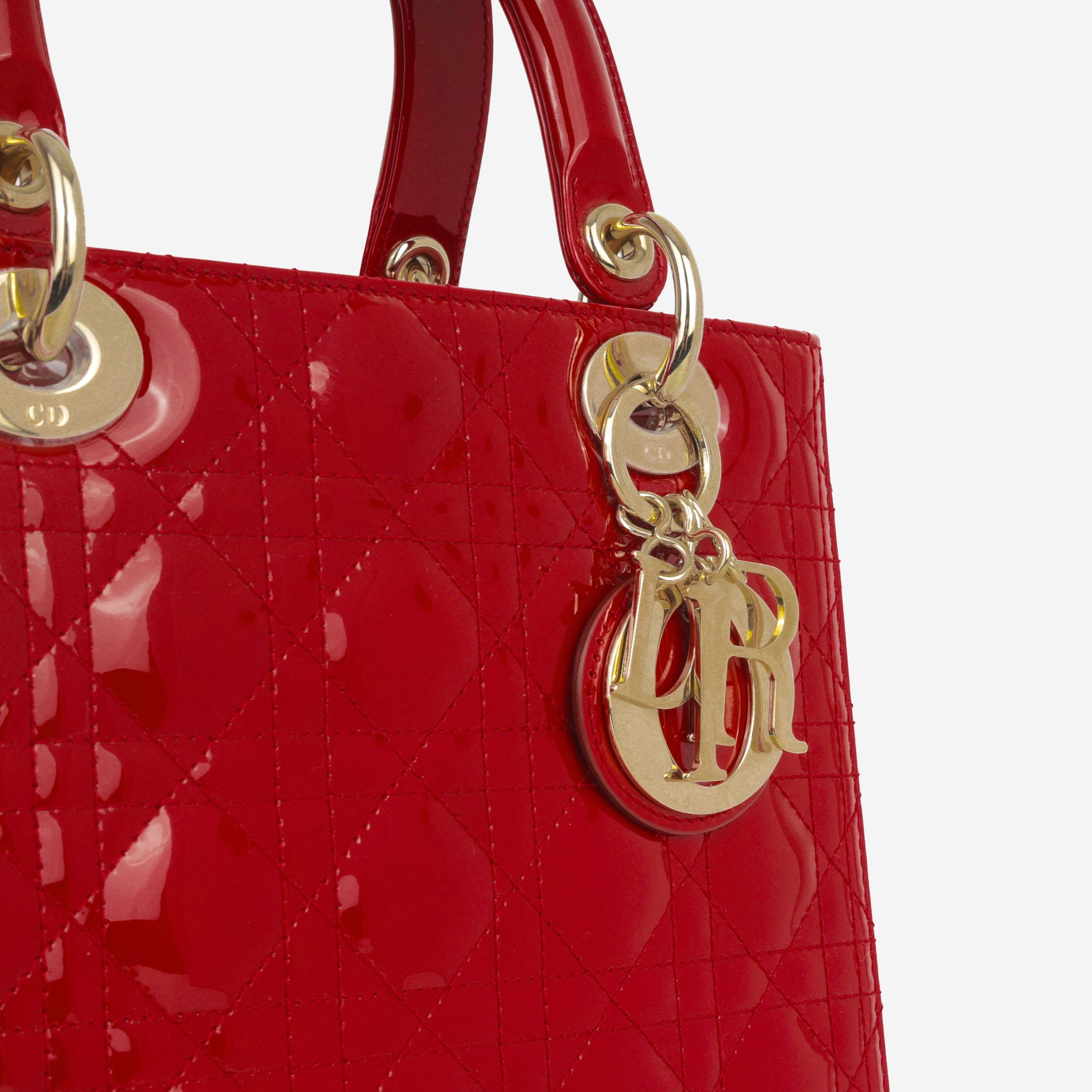 A timeless work of art, the "Lady Dior" bag has become the icon 'it-bag' within the entire Dior collection. Meticulously crafted by hand, this Medium-sized patent leather bag is enhanced by signature Dior "Cannage" stitching. The Lady Dior bag, also known as the Princess bag, is undoubtedly Dior’s most iconic bag. The bag is named after Princess Diana, who skyrocketed its popularity ever since she was first gifted the bag in the Mid-90's.