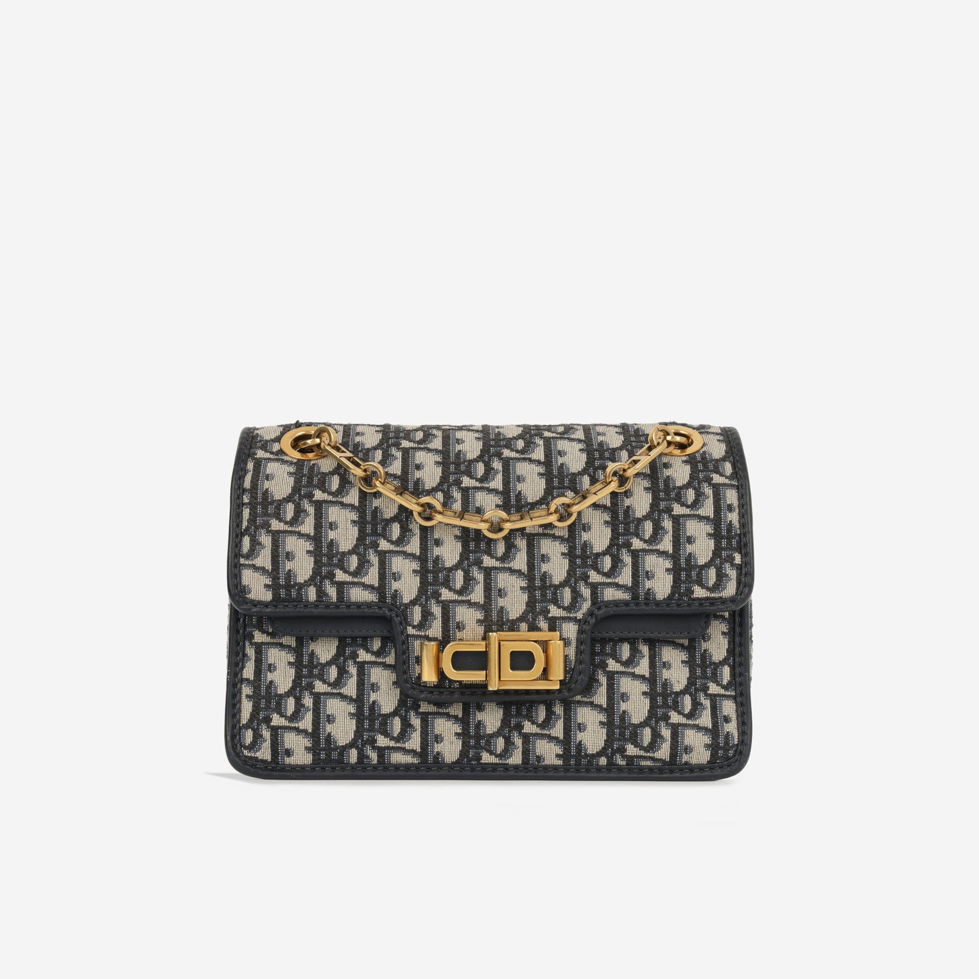 The Dior Miss DiorAddict bag is a stunning accessory crafted from premium navy Oblique canvas, embodying the elegance and timeless style of the Dior brand. Designed for versatility and convenience, this bag features a luxurious gold sliding chain that allows it to be worn as a crossbody or shoulder bag, making it the perfect companion for any occasion.
