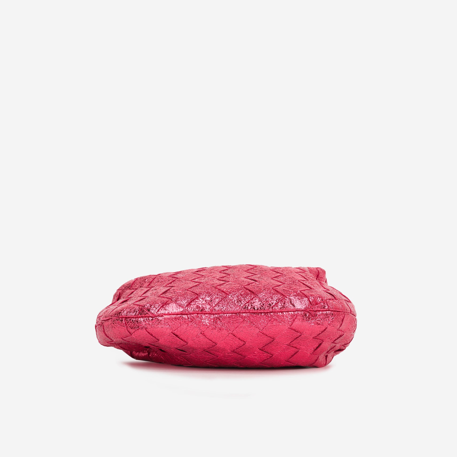 Bottega Veneta presents their stunning Jodie bag, a modern and functional interpretation of a classic hobo for a woman with a sophisticated sense of style. Carefully crafted in Craque Metallic Pink Intrecciato lambskin leather, this bag only launched just a few years ago and has already become iconic to the brand.