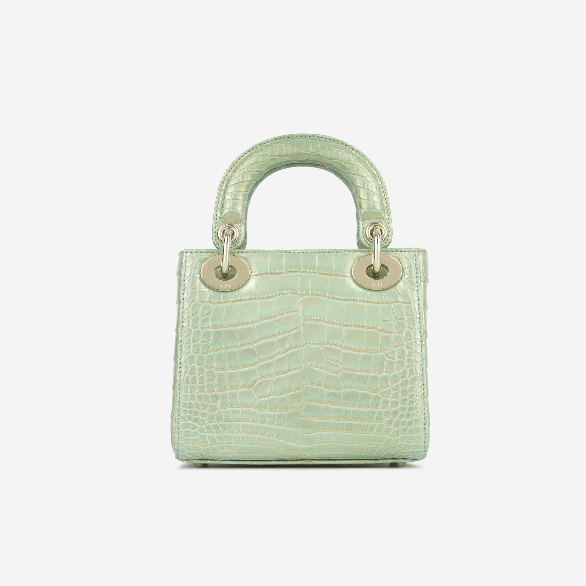 An instant success as soon as it was seen on the arm of Princess Diana, this mini Lady Dior is crafted from green and cold Crocodile Leather, a timeless masterpiece that combines elegance and luxury, adorned with champagne gold-tone hardware.