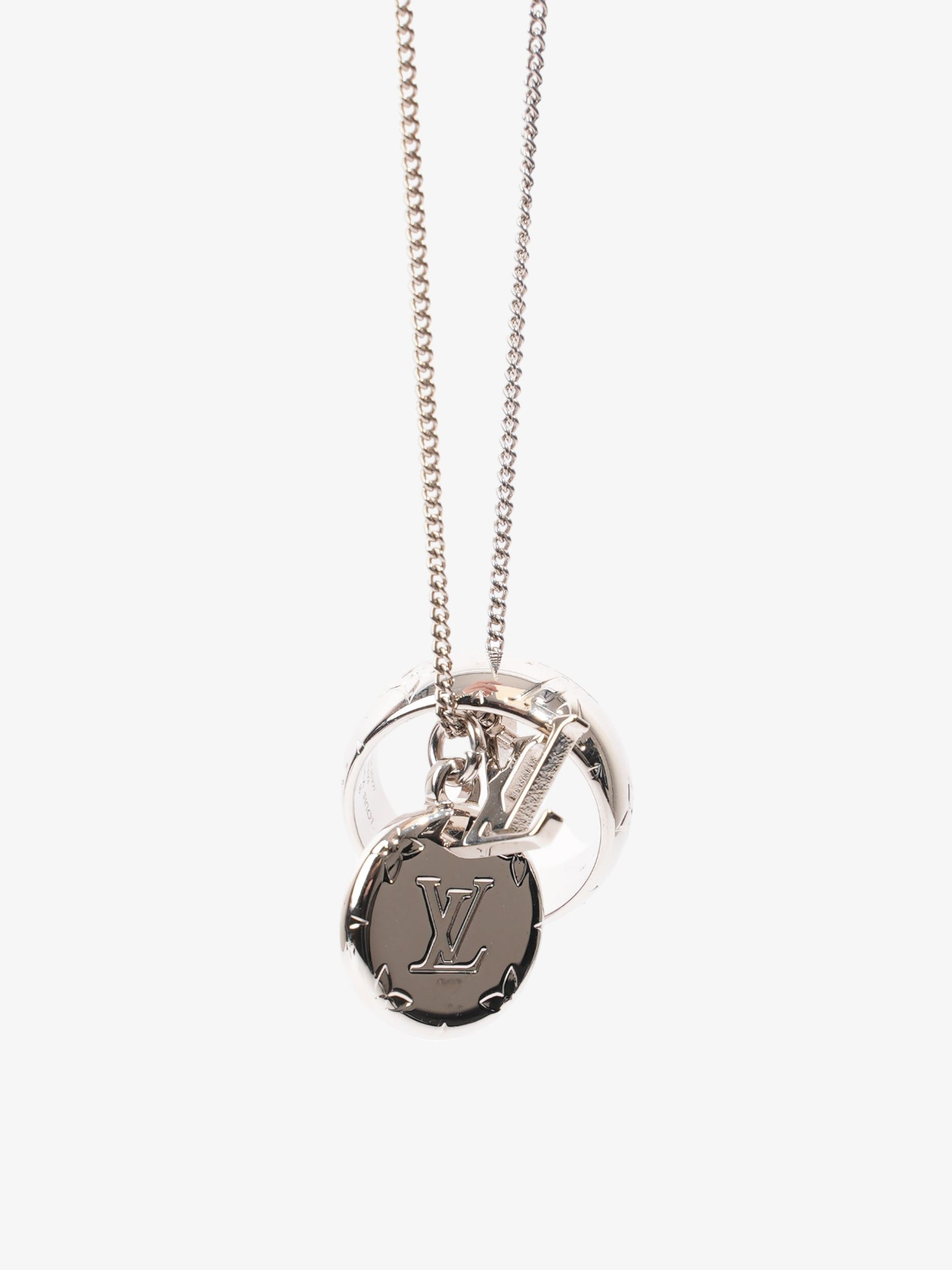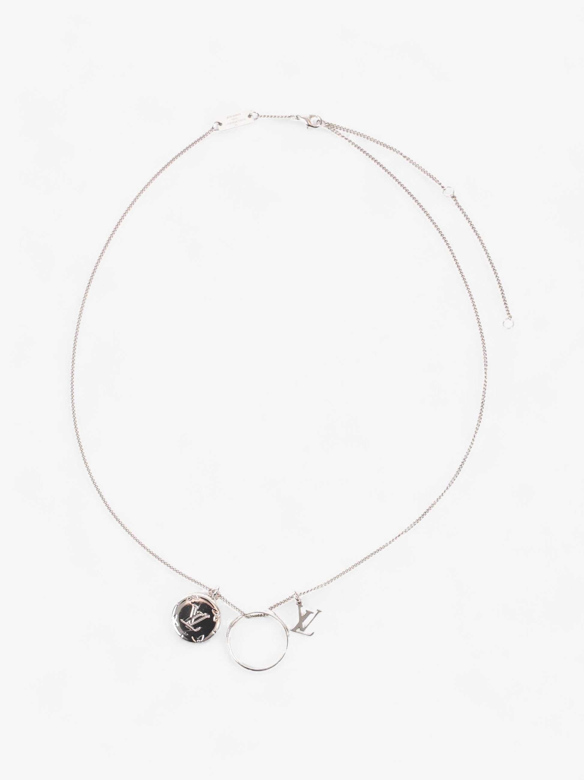 Louis Vuitton Monogram Charms Necklace Silver Brass
