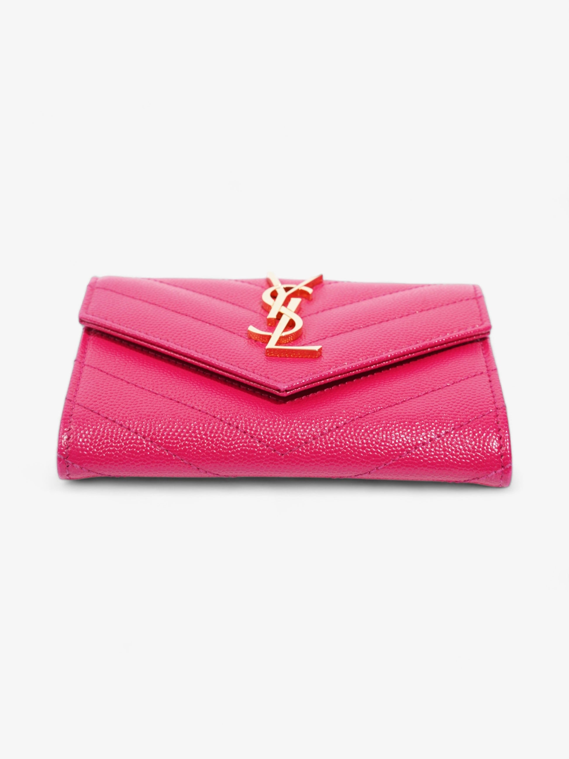 Saint Laurent Monogram Envelope Wallet Bubblegum Pink Calfskin Leather Small