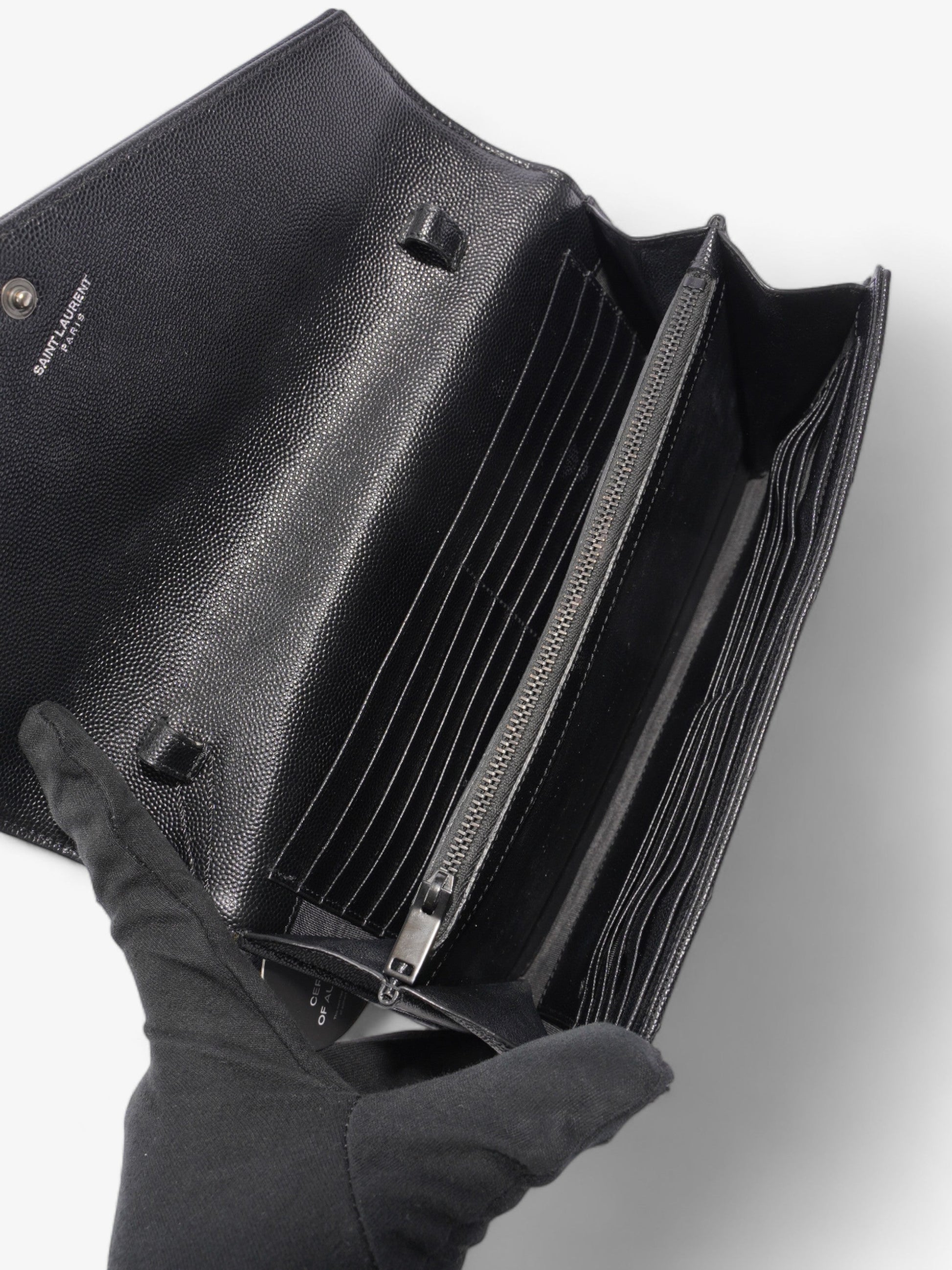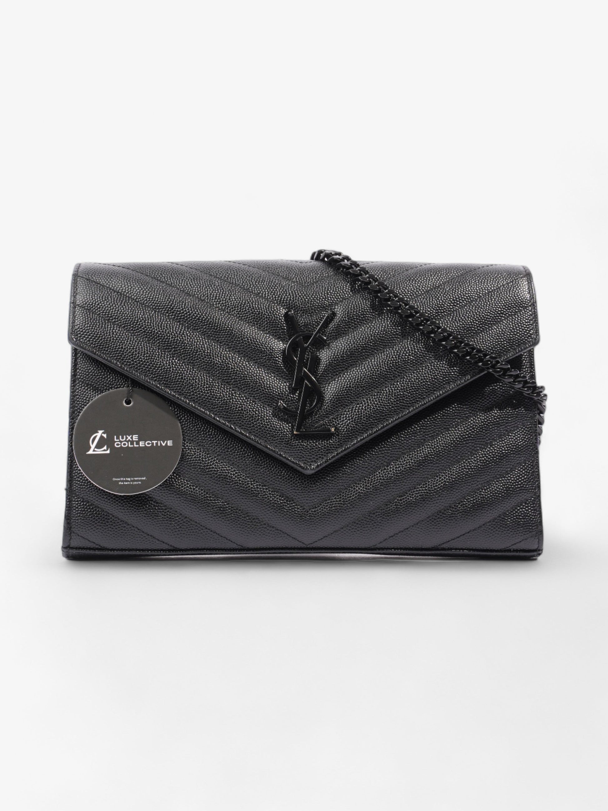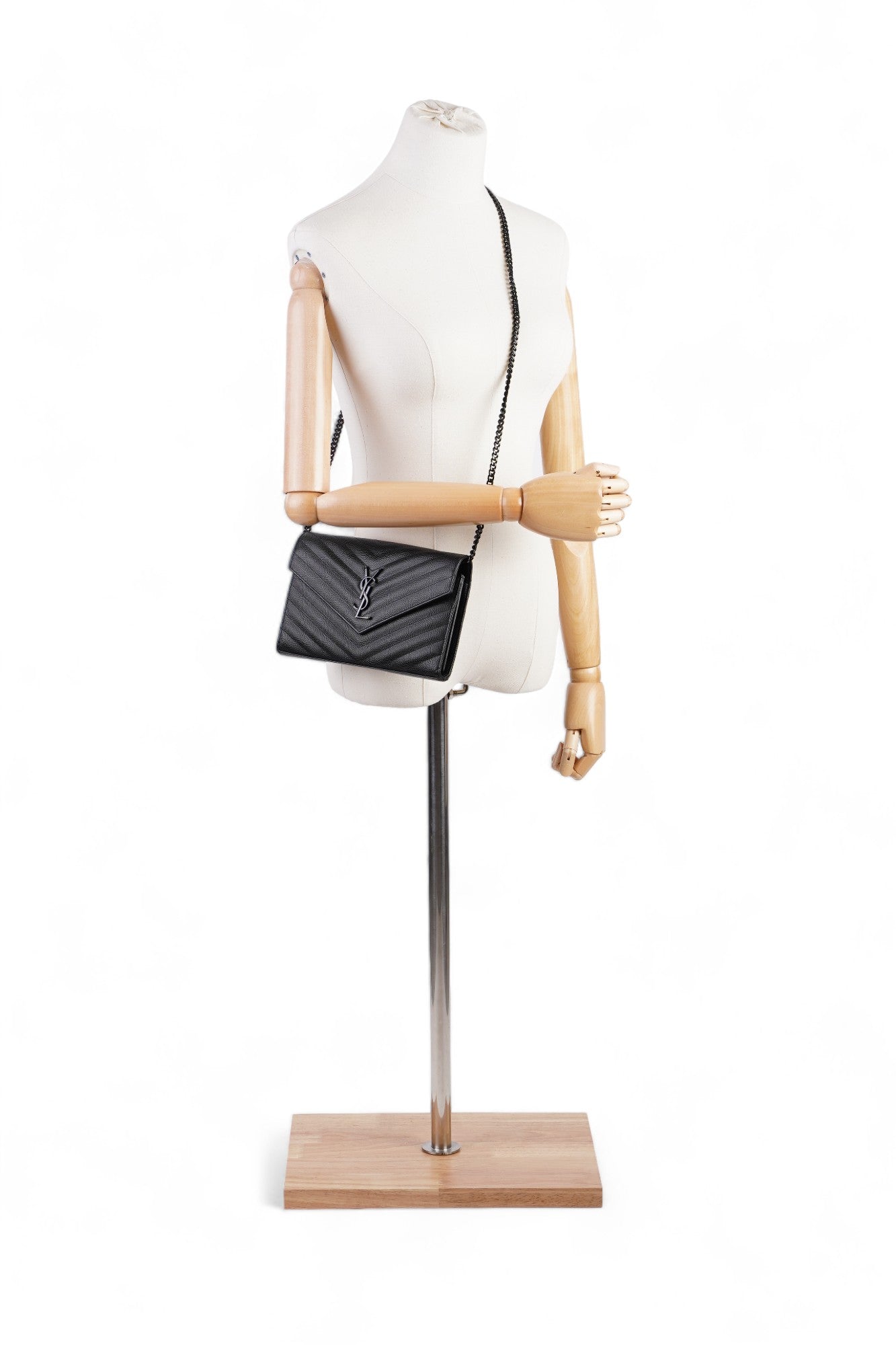 Saint Laurent Monogram Envelope Wallet on Chain Black Matelasse Leather