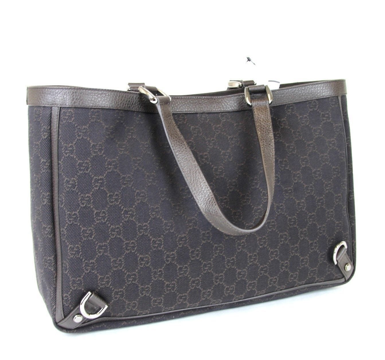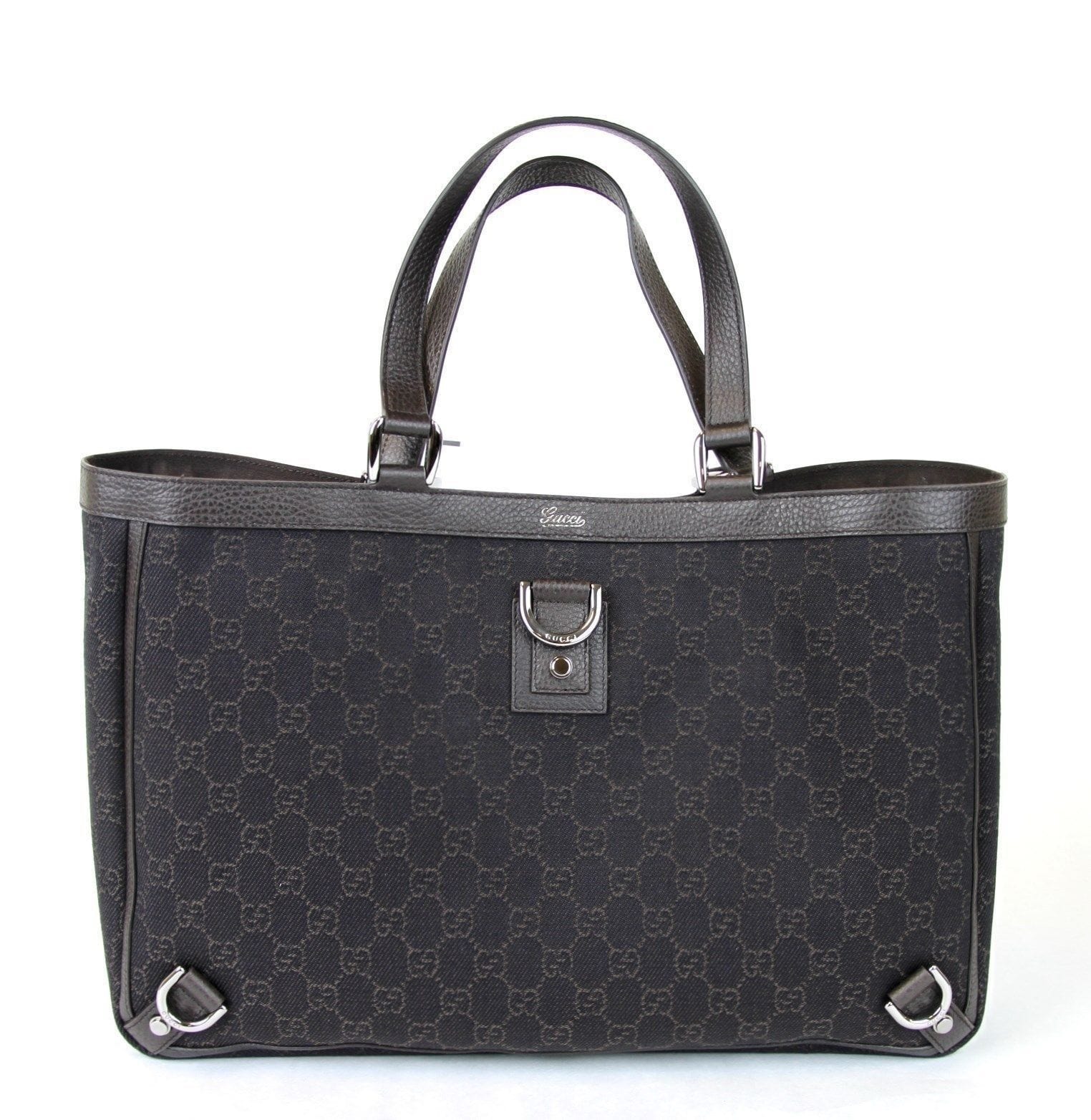 New Gucci 293580 Brown Denim D Ring Abbey Tote Bag Handbag