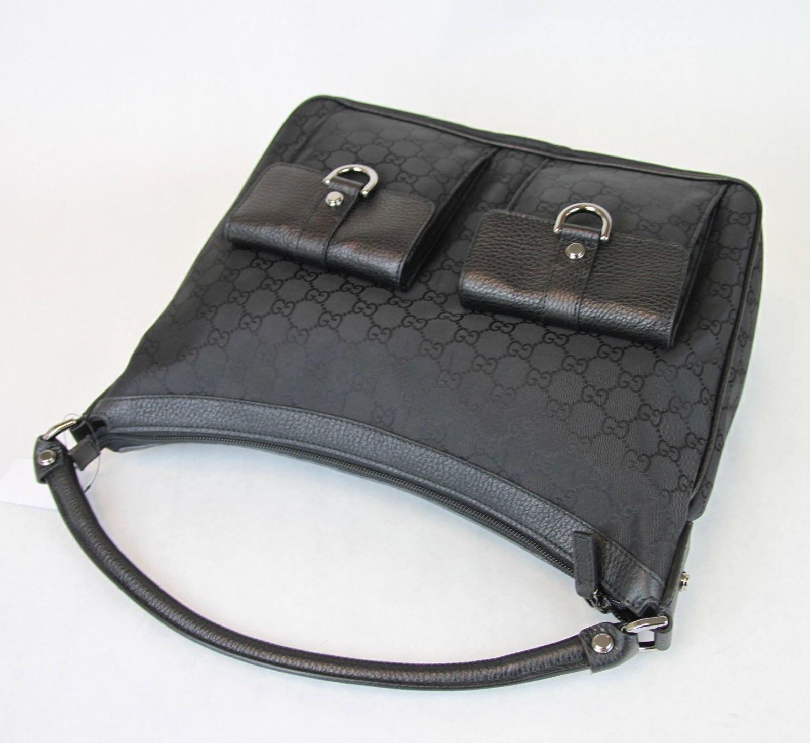 Gucci GG Abbey Hobo Bag Purse W/D Ring,Black Nylon 293581