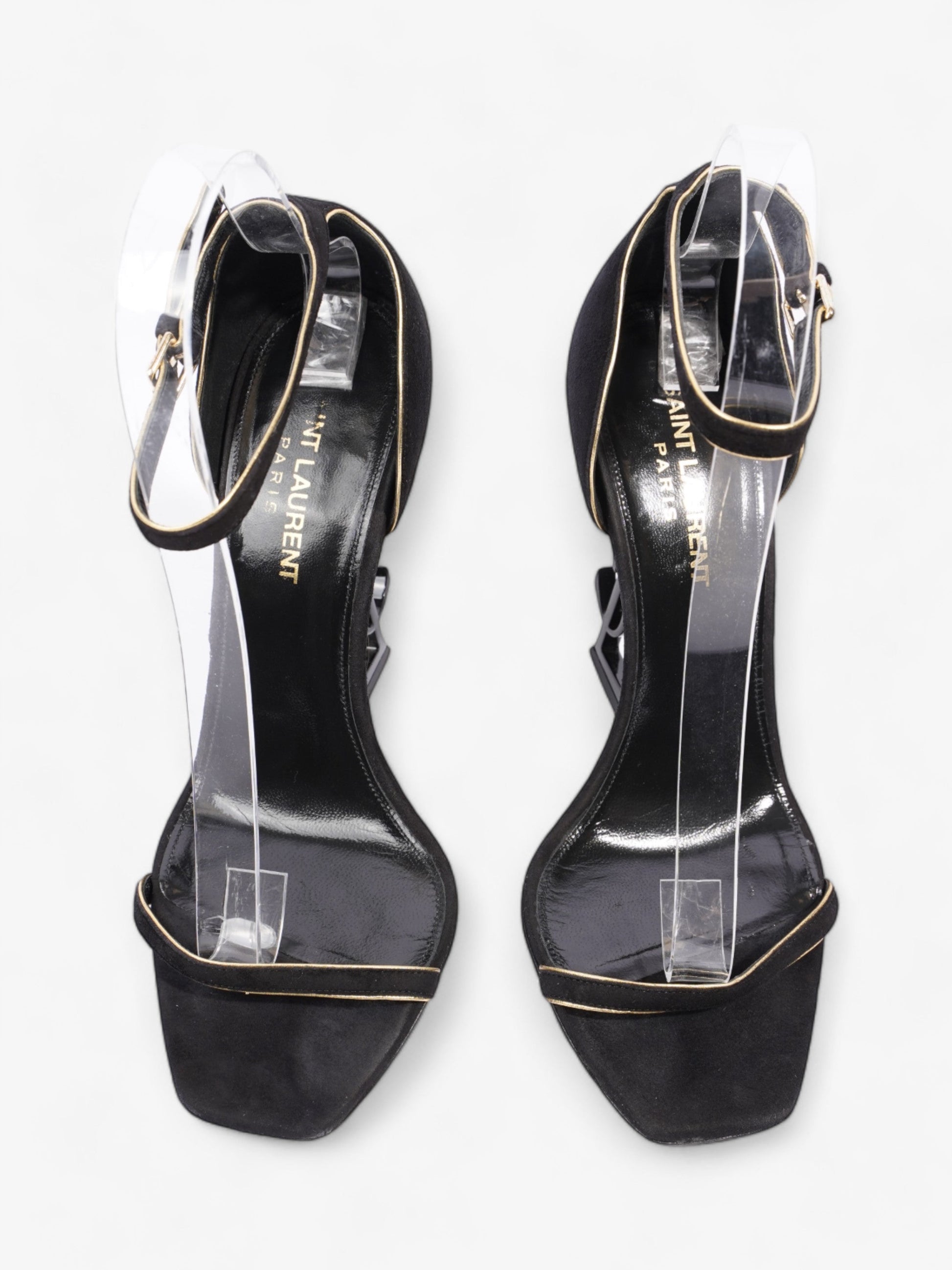 Saint Laurent Opyum Open Toe Heels 110mm Black / Gold Suede EU 37 UK 4