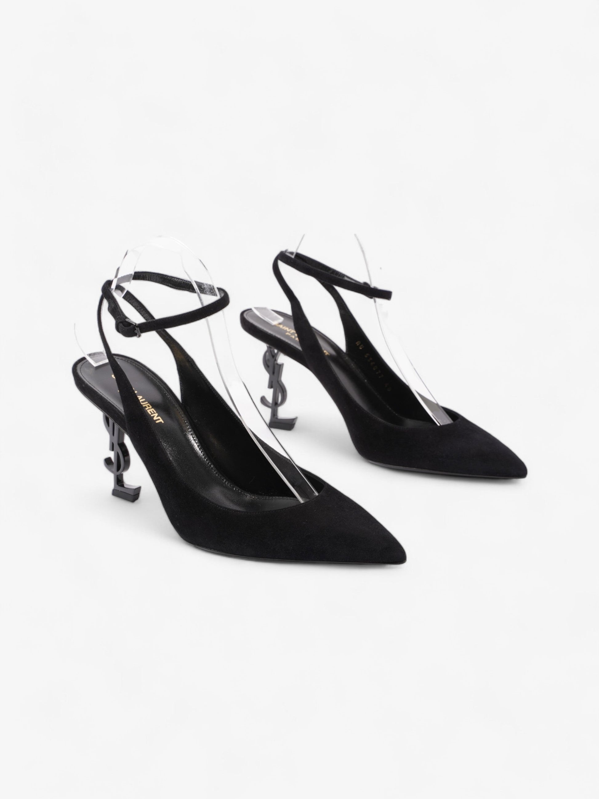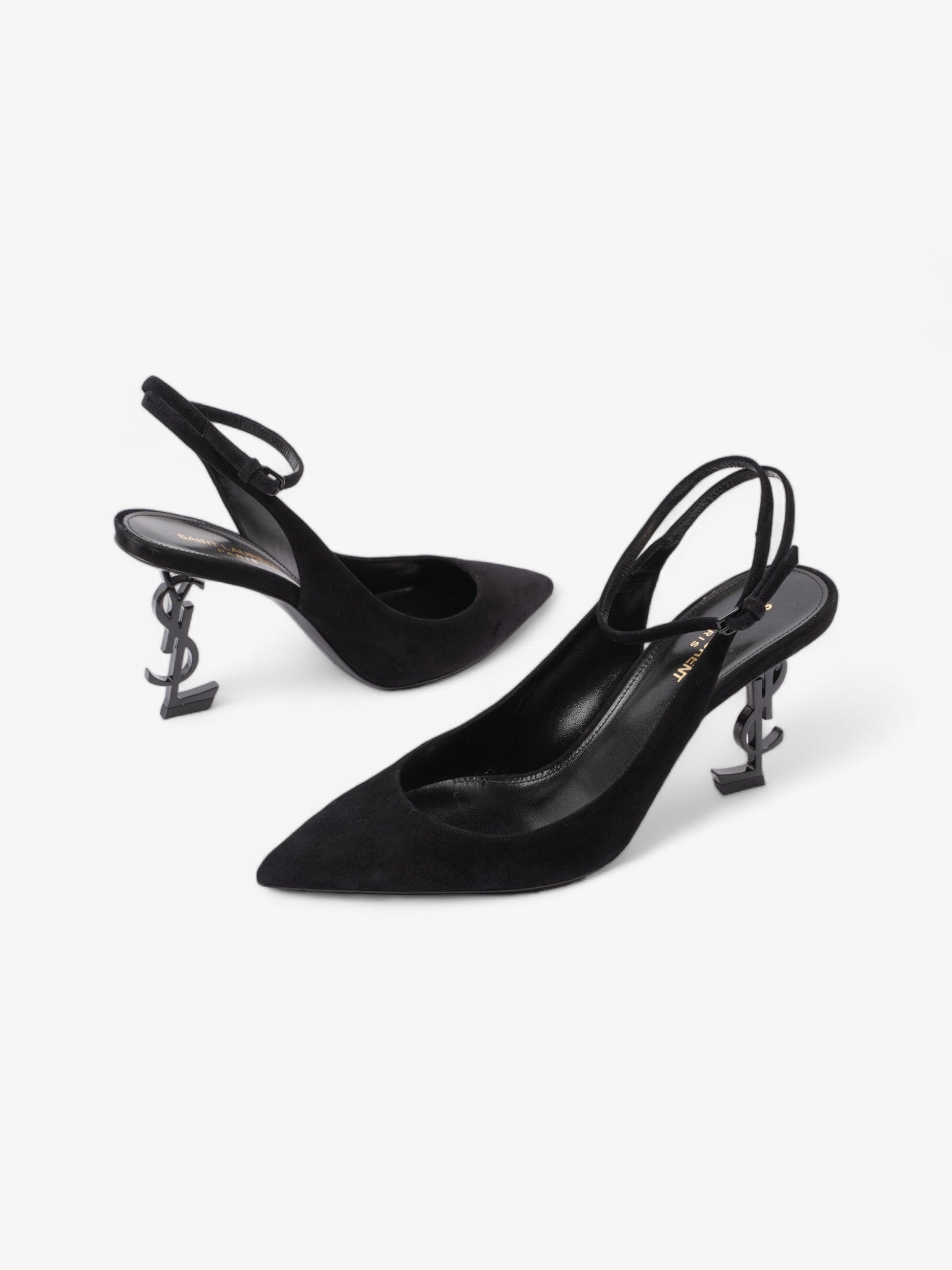 Saint Laurent Opyum Slingback Sandals 85 Black Suede EU 40 UK 7