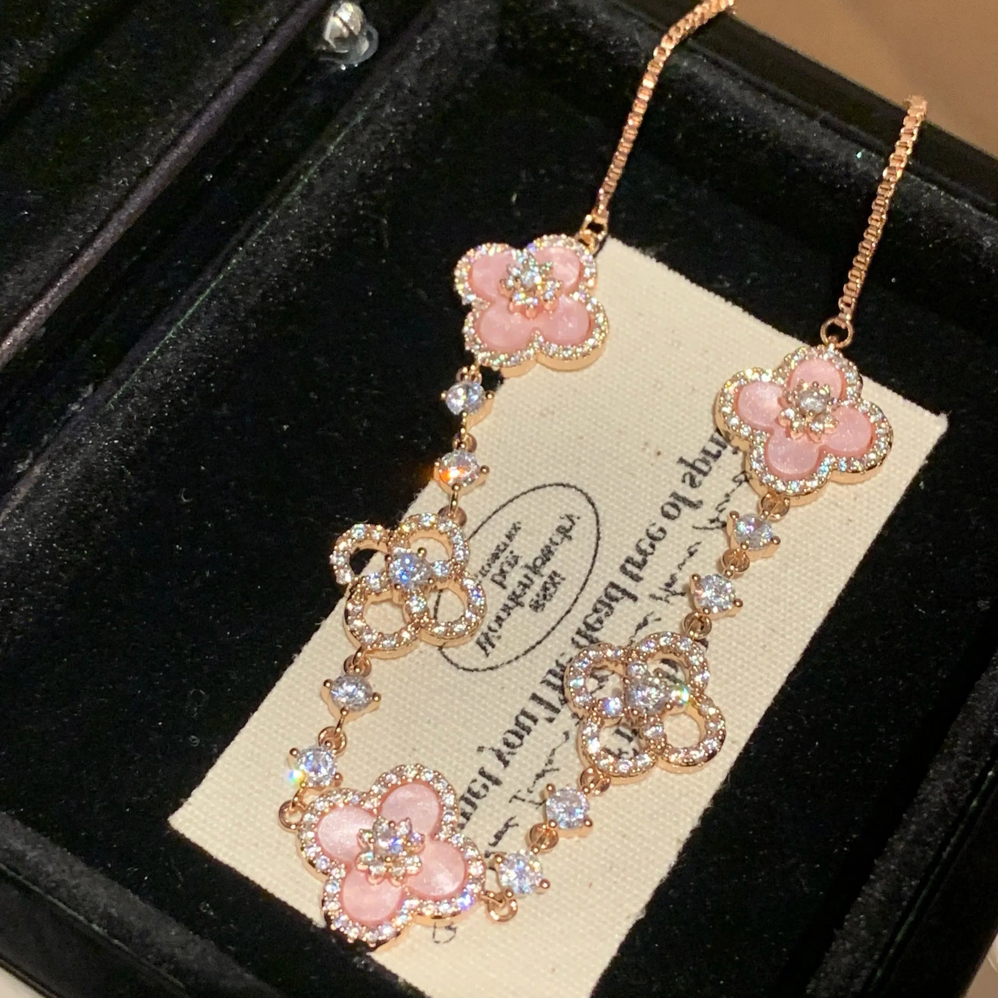 Pink Fritillary Four Leaf Clover Bracelet