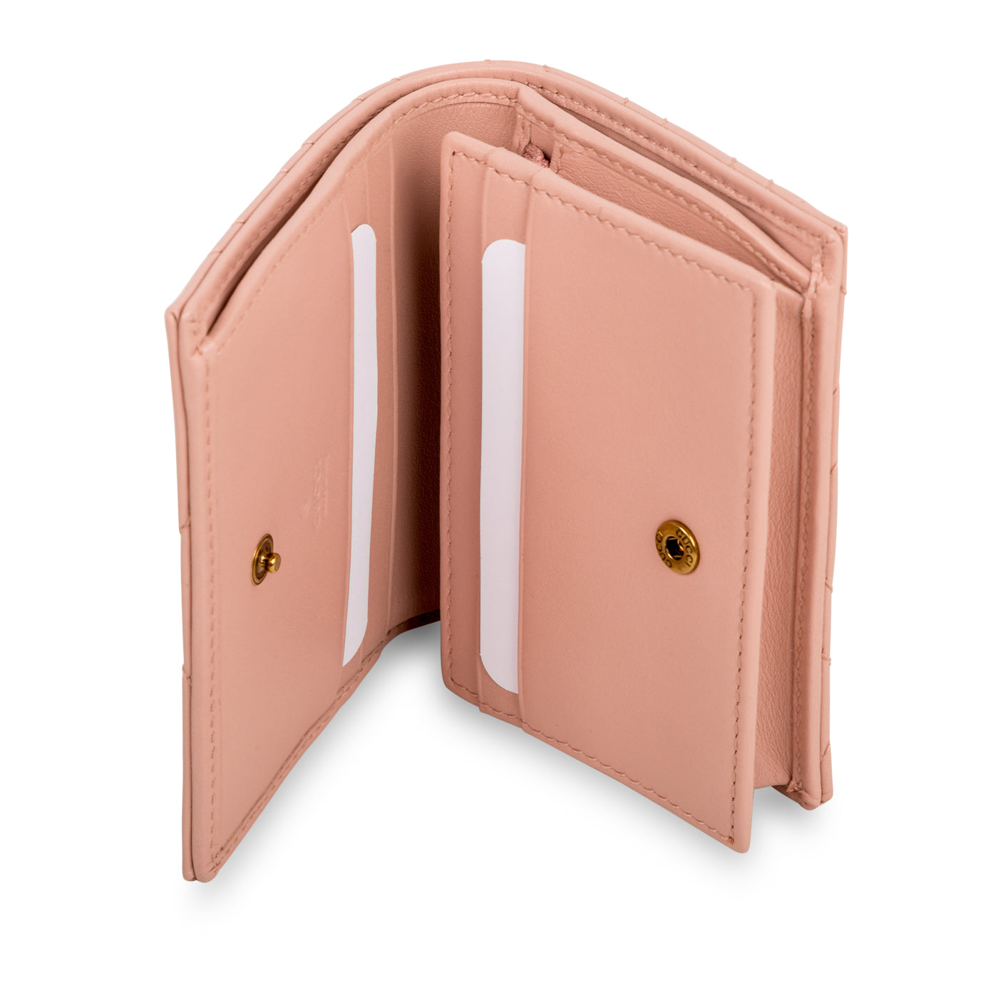 Why are wallets always so big? Why are cardholder's the perfect size but also so inconvenient for cash and change? Why can we never find the perfect in between? Just kidding, we found one and she's right here. This itsy, bitsy, teeny, tiny wallet from Gucci features everything you've been looking for. Small but mighty, you can easily fit all your cards, bills and yes, even loose change inside this little gem - and her gorgeous appearance is just the cherry on top. Crafted from smooth blush pink�leather and complimented by a gold-tone GG logo, this chic, stylish and practical little baby is just a piece that everyone needs in their life. The perfect balance between fashion and function, this GG wallet is a true must-have for any woman with a love for luxury and all-things glam.